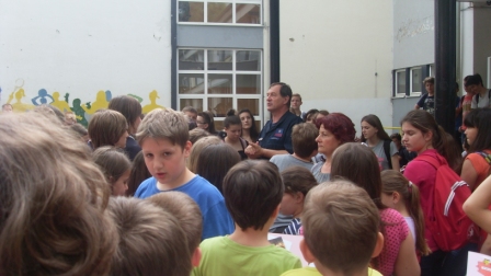 Po izlasku iz škole učenici su poslušali kratko predavanje vatrogasaca i predstavnika Državne uprave za zaštitu i spašavanje. Nakon probne vježbe uslijedio je povratak u učionice.