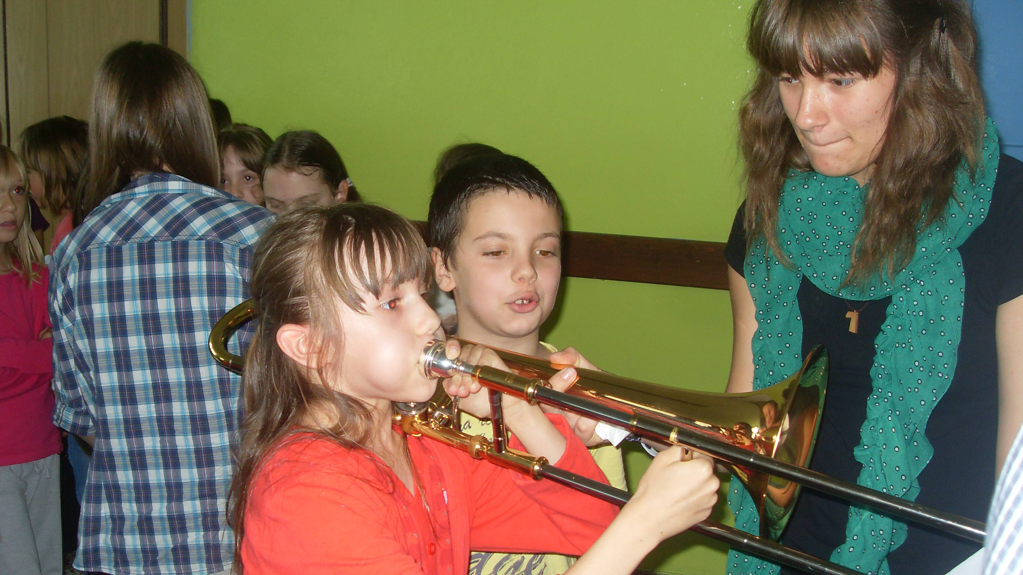 U petak, 6.lipnja, našu školu posjetili su profesori i učenici Glazbene škole Fran Lhotka Sisak, kako bi učenicima drugih razreda predstavili puhačke instrumente- trubu, rog i trombon.