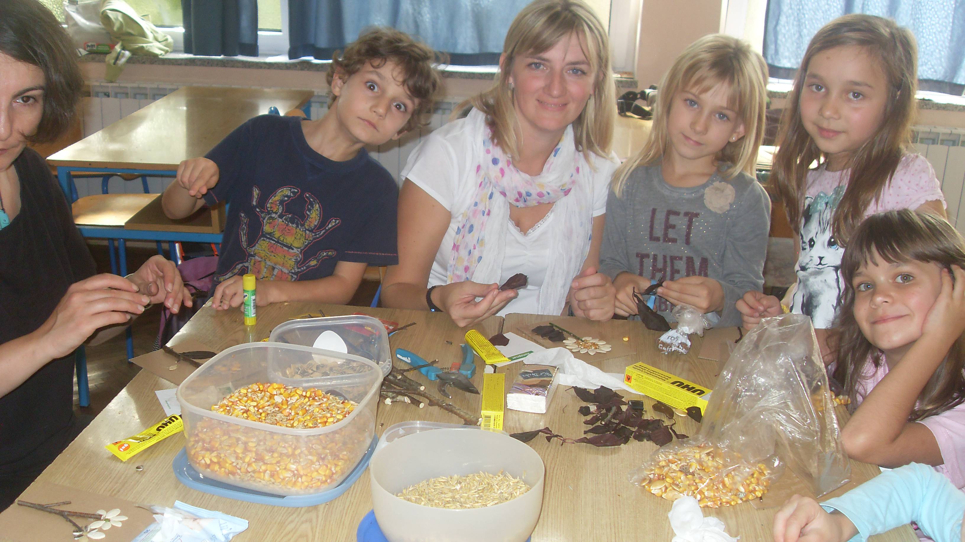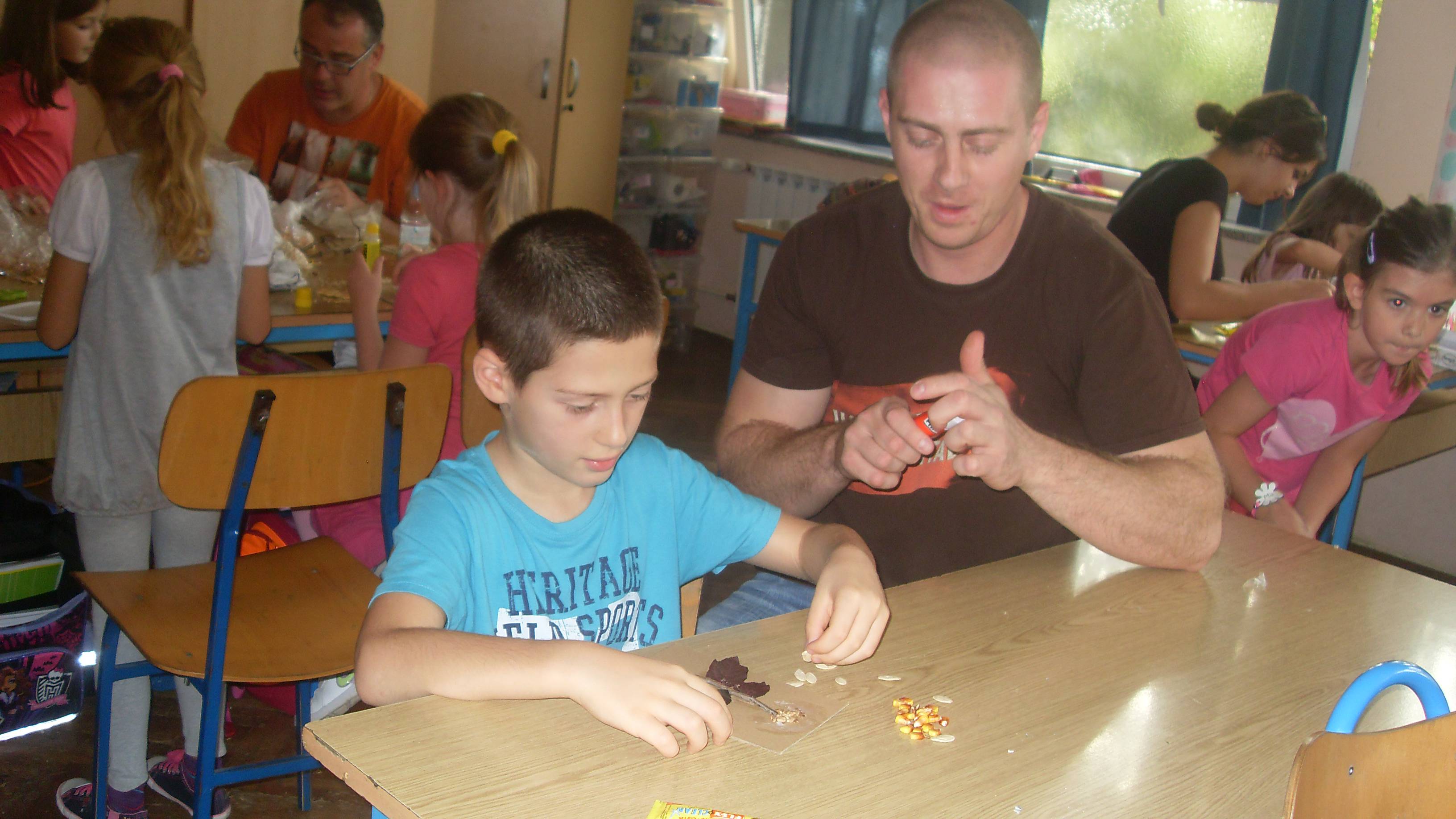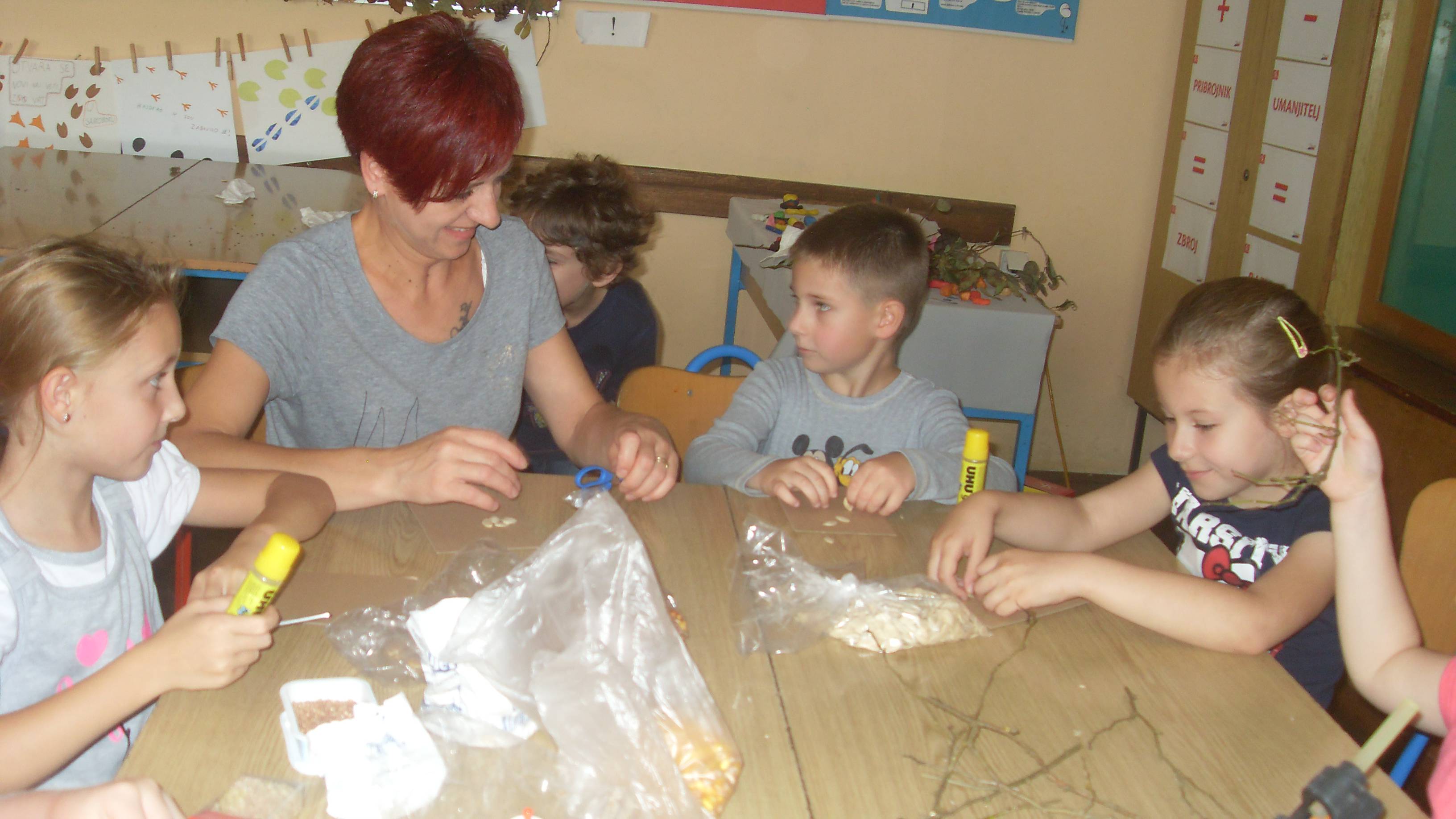 U utorak, 14. listopada u 1.a razrednom odjelu organizirana je likovna radionica povodom Dana kruha. Učenici su donijeli različite sjemenke bundeve, suncokreta, kukuruza, pšenice... tankih grančica, listića pomoću kojih su zajedno sa roditeljima izrađivali kreativne sličice.
