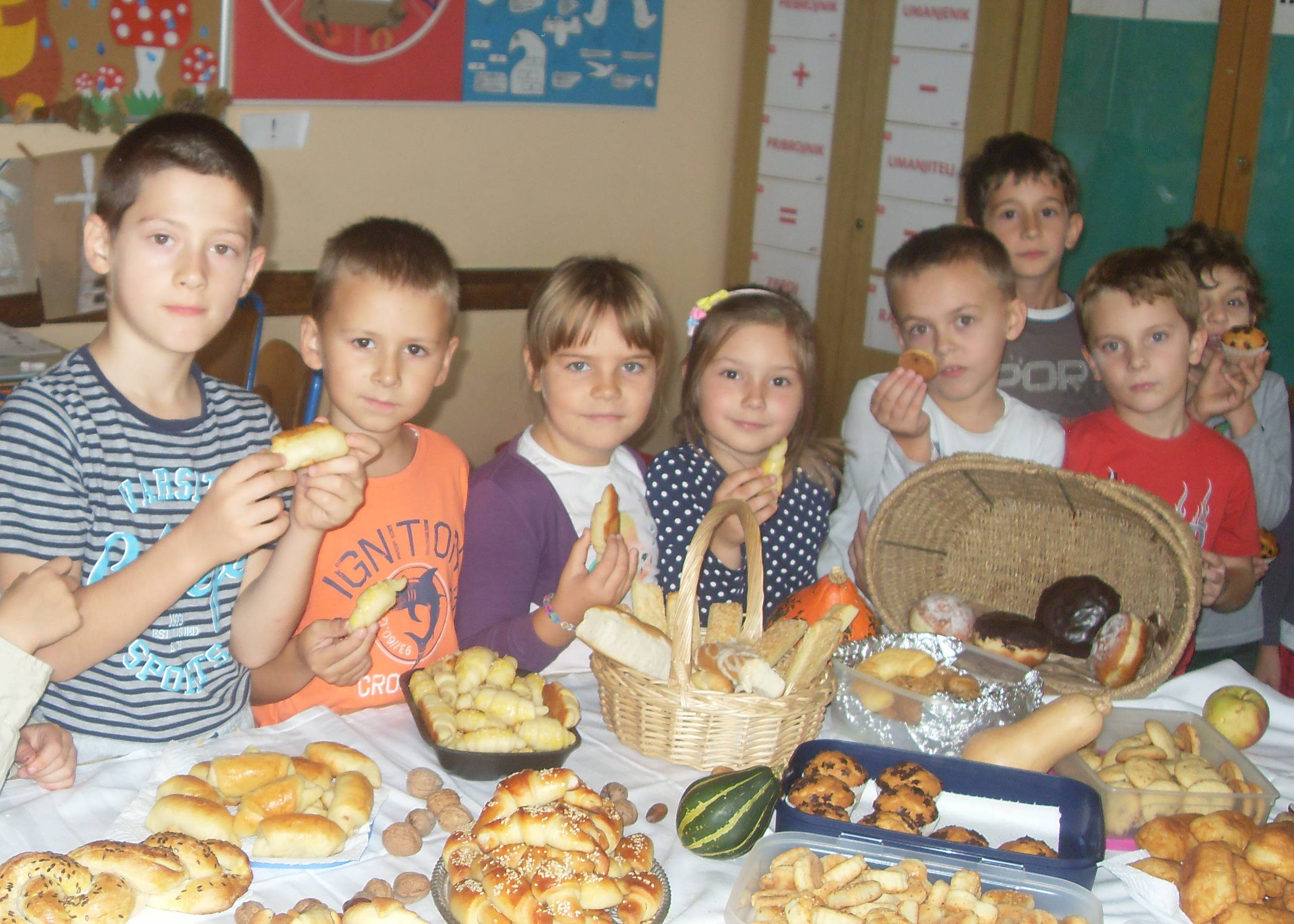 Veselo je bilo u petak u učionici 1.a odjela. Obilježili su Dane kruha, a marljive i vrijedne ruke roditelja i baka pripremile su mnoštvo ukusnih delicija, kiflica, kolača, muffina ....