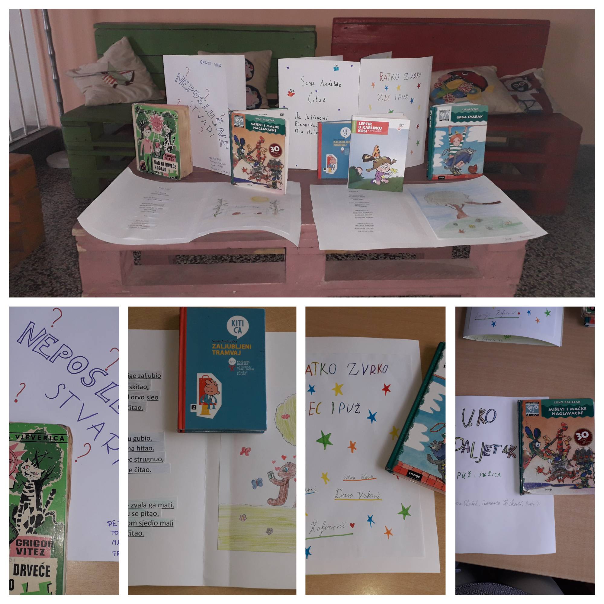Izložba je obogaćena likovnim radovima učenika 2. a razreda koji su na poticaj učiteljice Diane Mesić likovno izrazili dojam čitanja pjesama iz zbirke Zvonimira Balog „Pjesme sa šlagom ili Šumar ima šumu na dlanu“.