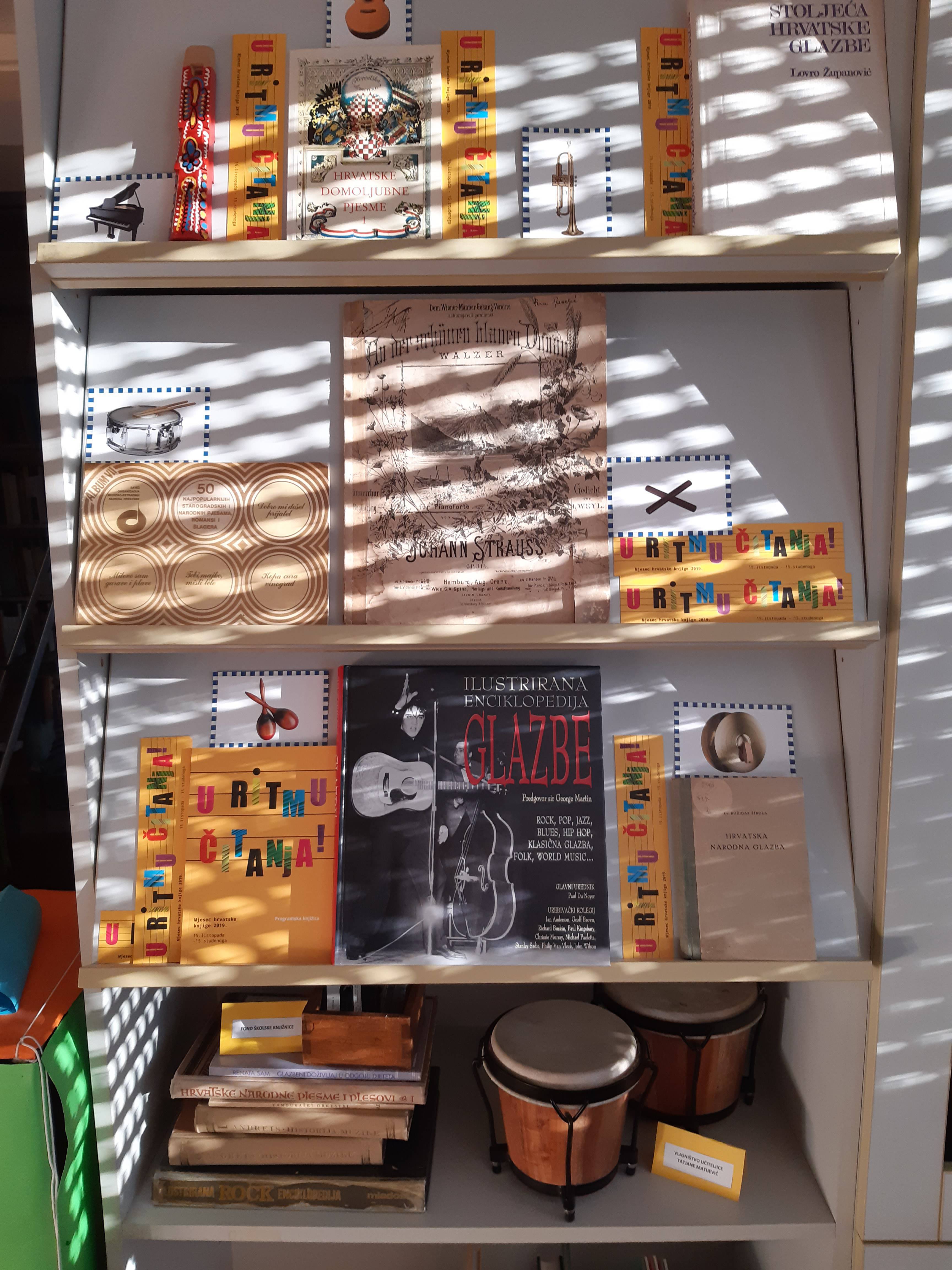 Izložbu „Ukoričene melodije“ koja je tijekom Mjeseca hrvatske knjige krasila kat naše škole u organiziranim su posjetima razgledali učenici 17 razrednih odjela.