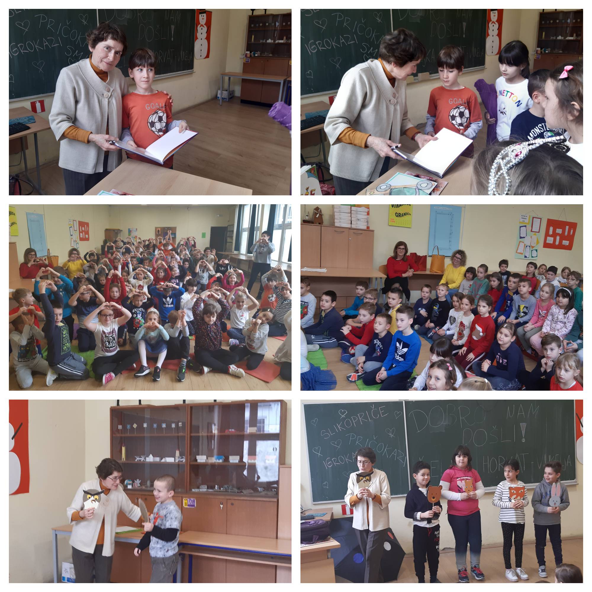 Književnicu su uime škole pozdravili Časopisci, Mia i Marija iz 2. a, a učiteljica Radojka Kozina s učenicima je uvježbala poznati autoričin igrokaz „Reumatični kišobran“. Zadruga VikSi darovala je književnici darak za sjećanje na našu školu, a učenici prvih razreda znakom srca vrednovali su nastup Željke Horvat-Vukelja kao izvrstan.