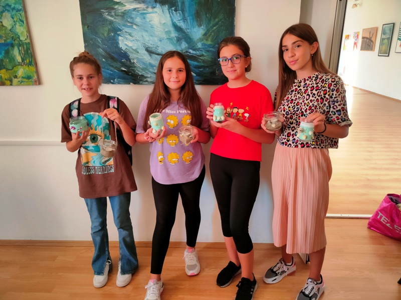 Učenici su bojali magnete izrađene od gipsa, a prikazivali su razne morske motive. Ukrašavali su i svijećnjake te staklenke brojnim školjkama, perlicama i drugim ukrasima… radovi su bili kreativni, šareni i veseli, a djeca oduševljena provedenim radionicama.