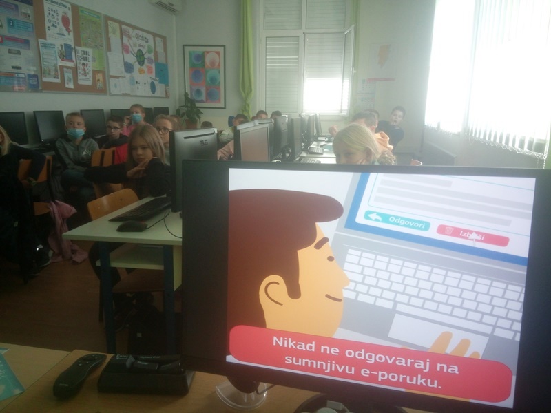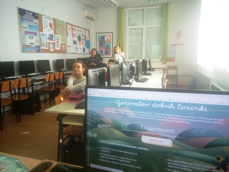 Učenici viših razreda naše škole su tijekom prošlog tjedna na satu informatike gledali priče naivaca (ljudi koji su zbog svoje naivnosti postali žrtve internetskih prevara), naučili kako generirati jaku lozinku, kako održavati kibernetičku higijenu te su na zabavan način provjerili svoje znanje iz područja kibernetičke sigurnost, a predavanja i radionice za učenike vodila je učiteljica mentorica informatike Dona Prović, mag. ing. comp.
