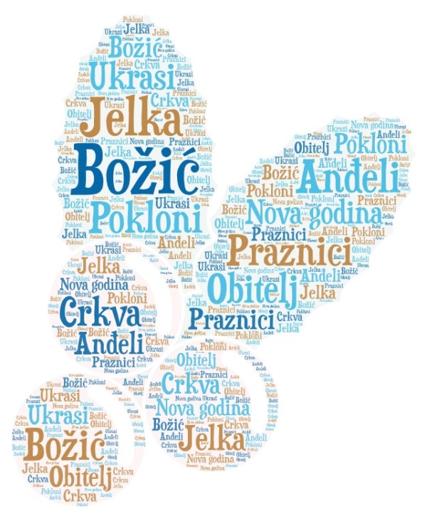 Učenici šestih razreda izrađivali su online oblake riječi koristeći riječi koje ih vežu uz Božić i Novu godinu, a pritom su njihove riječi tvorile oblike poput božićnog bora, Djeda Mraza, kuglica za bor, sanjki itd.