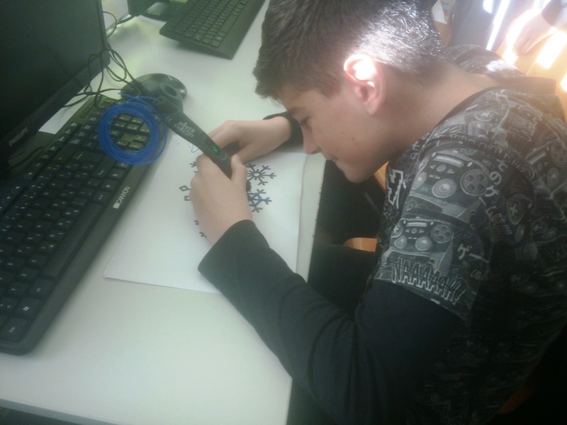 Također su crtali razne blagdanske motive koristeći se 3D olovkom... Najpopularnija je bila izrada pahuljica i ukrasa za bor, a učenici su svoje gotove uratke mogli ponijeti kući.