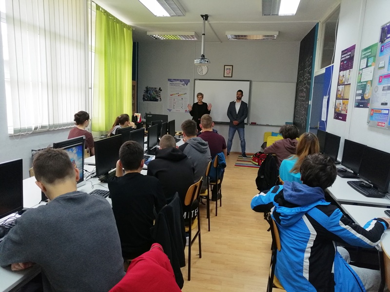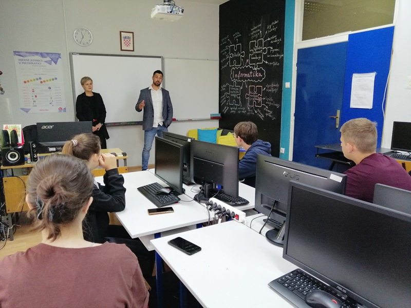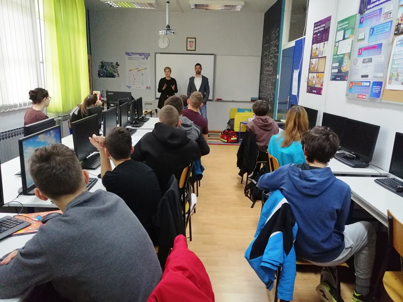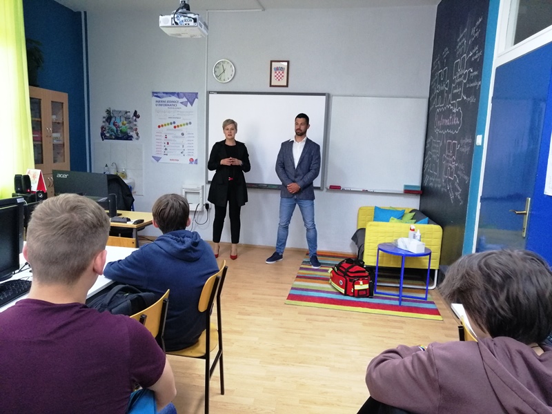 Pozvala ih je učiteljica informatike Dona Prović u sklopu projekta "Škola zdravog i sigurnog života" i rado su se odazvali na poziv kako bi objasnili učenicima 8.-ih razreda proceduru slanja tima hitne medicinske pomoći i važnost broja 112.