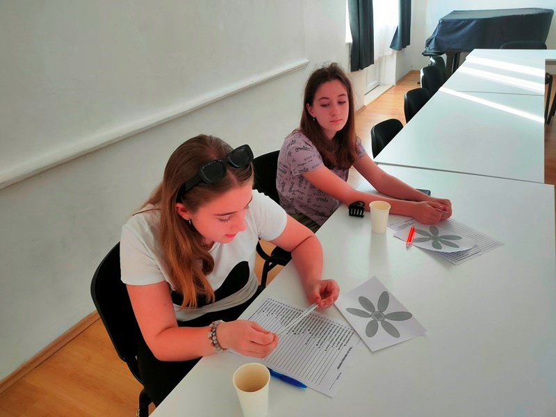 U sklopu radionice Mindfulnessa uradili smo vježbe osjetila. Nabrajali predmete koje su tražili durbinom u zadanom vremenu, pogađali mirise, okuse, iz vrećice zatvorenih očiju izvlačili i pogađali predmete te slušali zvuk činela i triangla. Radili vježbe dubokog disanja i vođene fantazije koje smiruju, poboljšavaju koncentraciju koja je važna za učenje i pamćenje. Pogađali smo raspoloženja s kartica. Na kraju smo u krugu igrali vježbu povjerenje i izvukli papirić s motivirajućom porukom. Radionice su protekle u veseloj atmosferi. Svi su pokazali interes za ovakve vrste radionica i želja im je da ih što prije ponove.