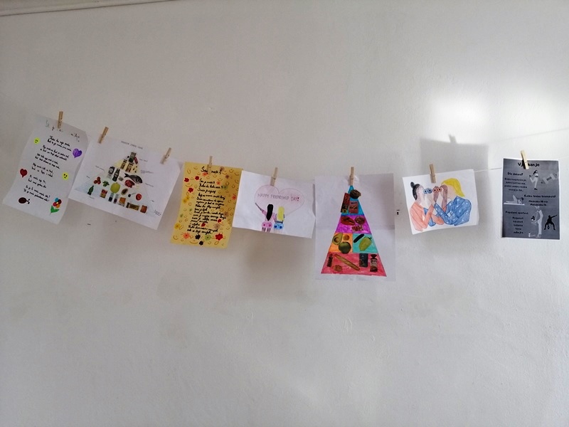 Izložili smo dio učeničkih radova s motivima vezanim uz teme Projekta. Učenici su na početku pogledali prezentacije o Danu najboljih prijatelja i Svjetskom danu oceana, koji se obilježavaju 8. lipnja, a zatim su slijedile razne radionice različitog tipa poput kvizova, ekspresije, igara, međusobne analize… na koje su učenici pozitivno reagirali. Spoznali su važnost prijateljstva i očuvanja oceana, kao i okoliša u cjelini.