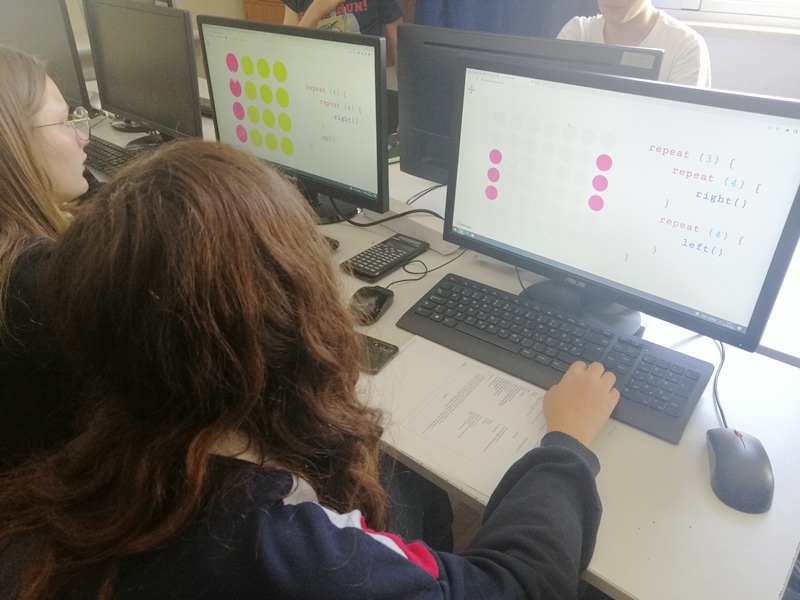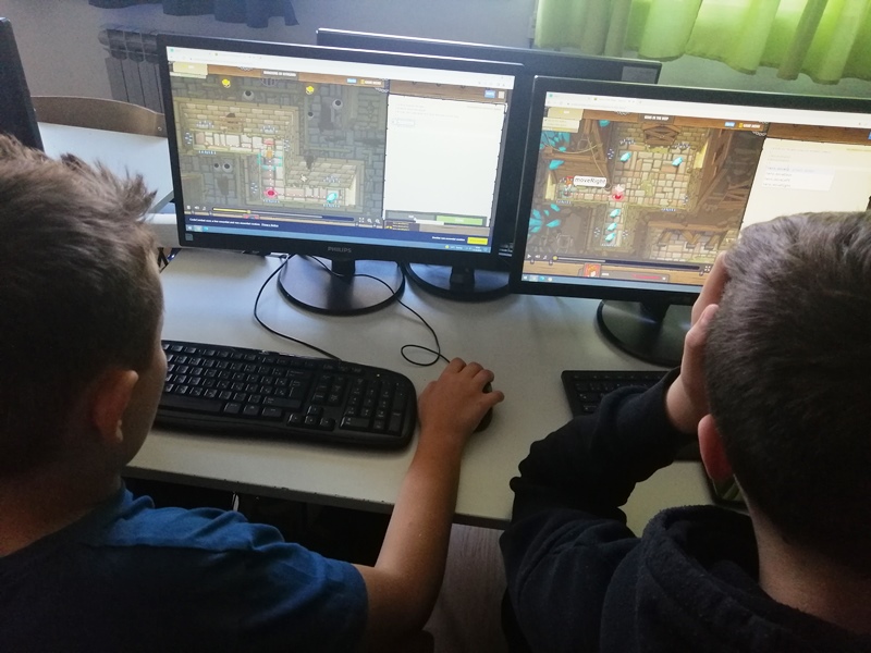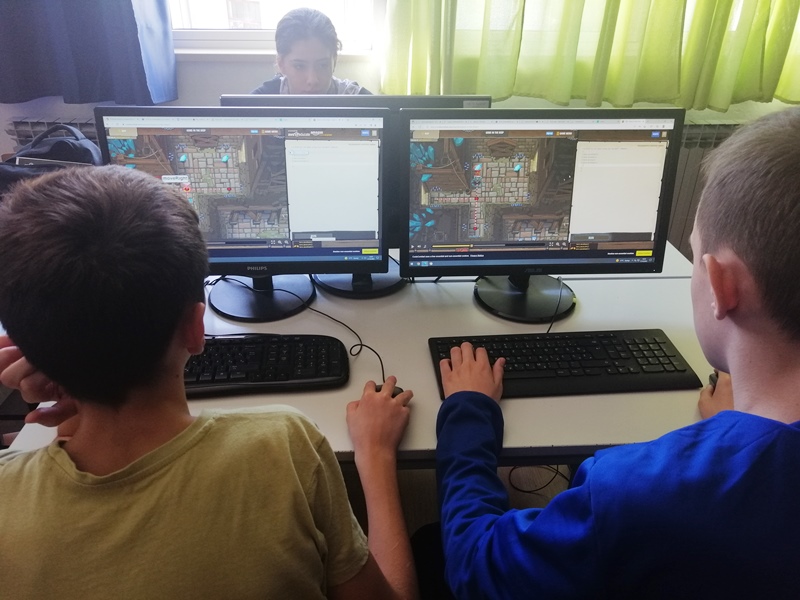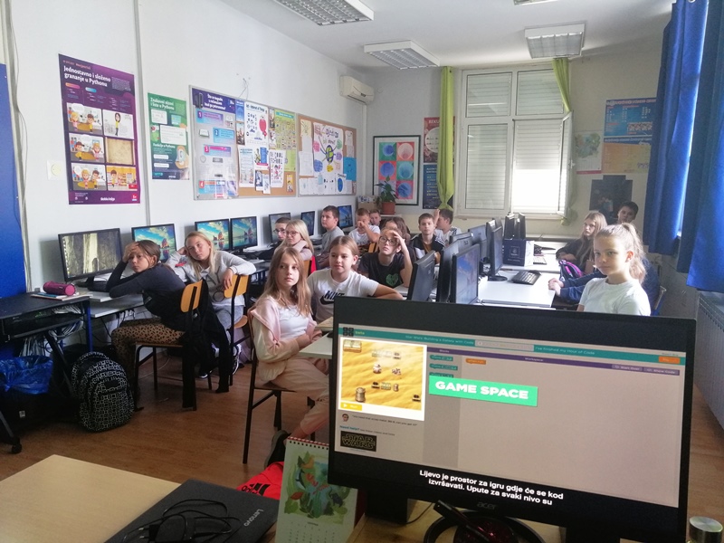 Sedmaši i osmaši su kroz Python igru učili osnovne koncepte programiranja interpretirajući programe kako bi pronašli ispravnu putanju i pobijedili u izazovu. U igri CodeCombat su kodiranjem puta izbjegavali opasnosti i vodili svog junaka kroz iduće nivoe, skupljajući dragulje i predmete koji otključavaju nove programske moći.