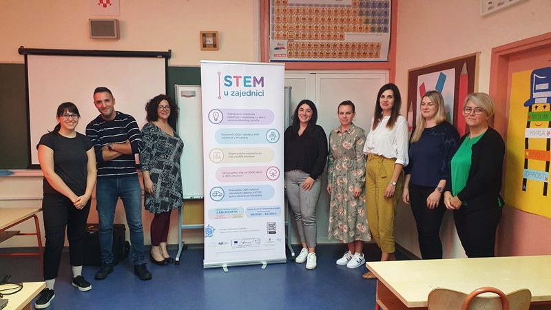 U utorak, 27. 9. održana je edukacija mentora u sklopu projekta STEM u zajednici, a naša škola je bila ustanova domaćin edukacije u regiji. Cilj projekta STEM u zajednici je potaknuti program popularizacije STEM-a s naglaskom na približavanje tehnologije i inženjerstva djeci osnovnoškolskog uzrasta.