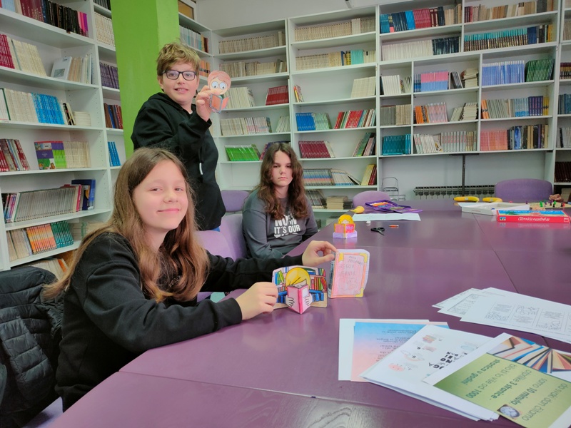 Učenici 5. razreda izradili su prigodne figurice koje su vezane za temu knjige koristeći škare, papir, ljepilo i boje.