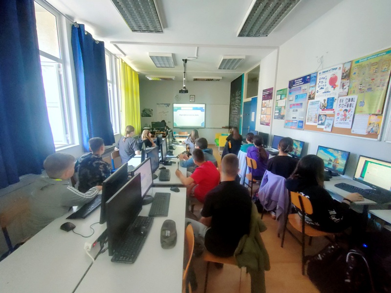 Predmetna učiteljica informatike, Dona Prović, pokazala je učenicima kako koristiti servis. U tome joj je pomogao školski knjižničar, Mario Bebek, koji je istaknuo kako u nedostatku fizičke lektire slobodno mogu koristiti uslugu koju im nudi CARNET.