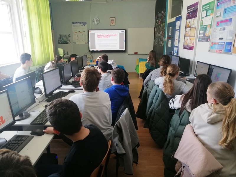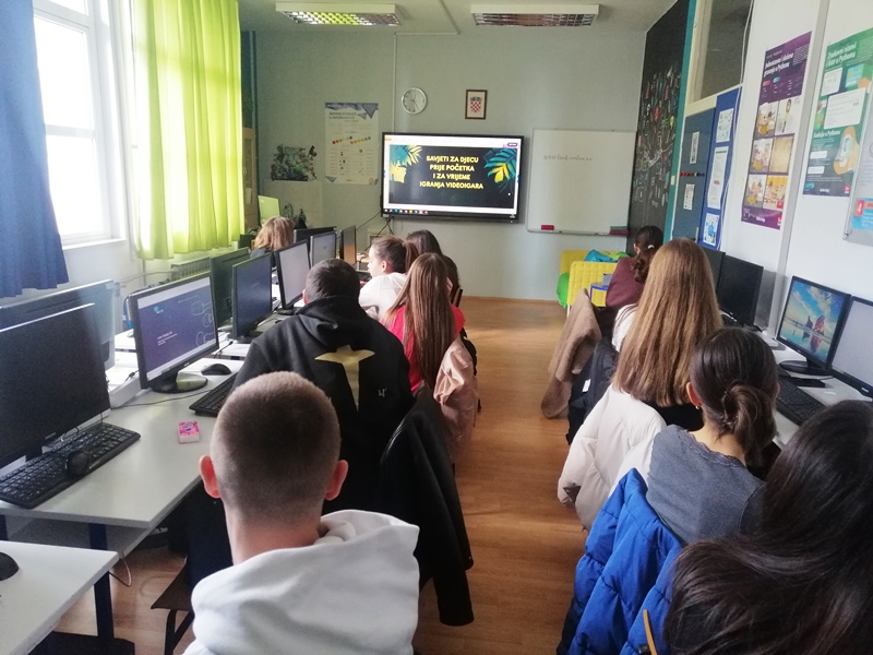 Tijekom prošlog tjedna se na nastavi informatike obilježio Dan sigurnijeg. Obzirom da je ovogodišnji slogan „Gejmaj sigurno – zajedno za bolji internet“ - sve aktivnosti su se odnosile na videoigre i odgovorno igranje, a aktivnosti je vodila učiteljica informatike Dona Prović. Svi učenici koji pohađaju informatiku su malo više naučili o videoigrama, dobili su upute za sigurno igranje, raspravljali o igranju i svojim iskustvima tijekom igranja videoigara te ispunili anketu o navikama igranja i na taj način saznali koliki utjecaj videoigre imaju na njih.