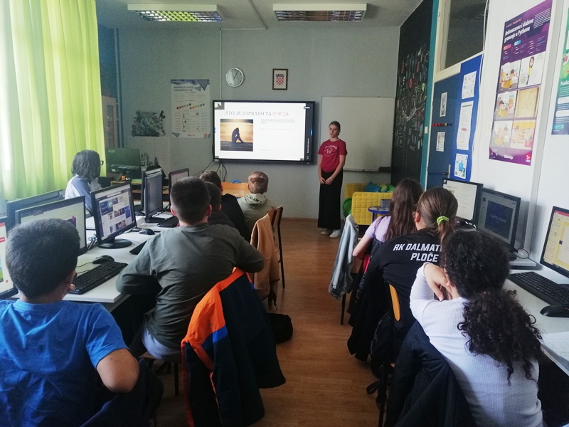 Učiteljica geografije je organizirala posjet s djelatnicama Crvenog križa, gdje su učenici imali prilike više naučiti o aktivnostima koje provode, a demonstrirana im je i primjena pružanja prve pomoći u hitnim slučajevima. S učenicima je obilježila Dan radija tako što su isprobali aplikaciju RadioGarden na kojoj se nalaze radio postaje iz cijelog svijeta, birali su i slušali razne radiopostaje. Učenici 8. razreda su imali nastavu u pločanskom kinu, učili su geografska obilježja Azije kroz film Sedam godina u Tibetu. Također je s učenicima obilježila Dan jedinstvenog europskog broja za hitne službe 112, a učenici su učili i o ekologiji i sudjelovali u izradi EM bio kugli - eko kuglica za more.