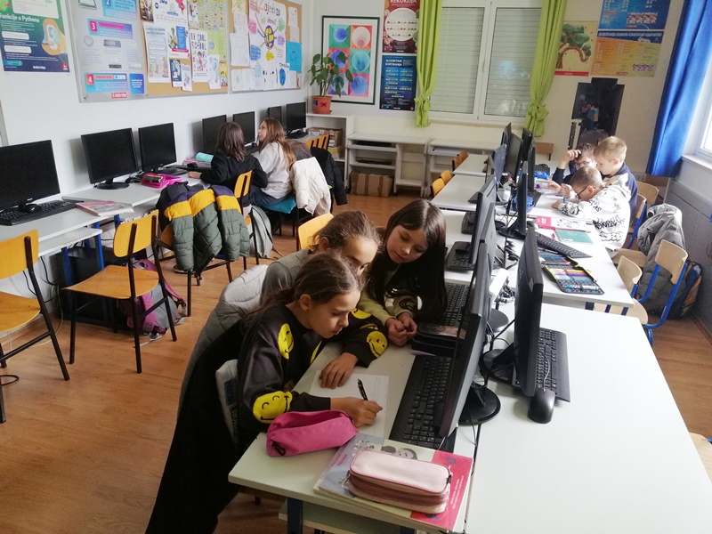 Učenici 4. razreda su sudjelovali u radionici iz edukativnih materijala Centra za sigurniji internet Zamisli dan bez ekrana, u kojoj su naučili da trebaju manje vremena provoditi na računalu i mobitelu, a više vani u druženju s prijateljima. Svrha radionice je bila razvijanje svijesti o vremenu provedenom pred ekranima, jačanje timskog rada te razumijevanje važnosti ravnoteže između online i offline svijeta. Na kraju radionice su ispunili evaluacijski upitnik. Radionica im se jako svidjela, kao i ostale aktivnosti, a najviše su uživali u igri "Dabrica Darka zna se pristojno ponašati i na internetu", u kojoj tijekom igre učenici dobivaju povratne informacije i poticajne poruke.