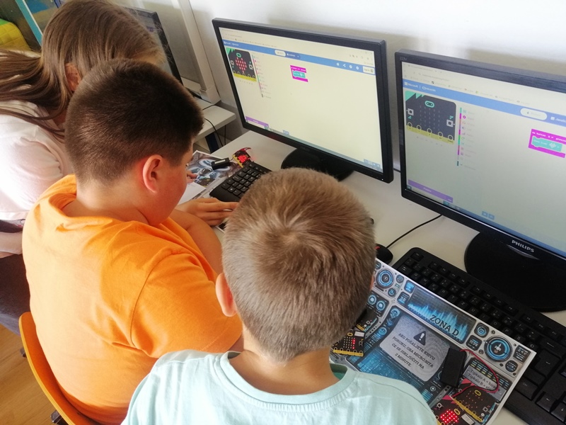 Učenici su se upoznali s osnovnim funkcijama micro:bita i razvijali digitalne kompetencije kroz praktične i zanimljive izazove. Prikupljali su bodove rješavanjem zagonetki tako što su otkrivali kodirane poruke programirajući mikroračunala unutar vremenskog ograničenja od 60 minuta.