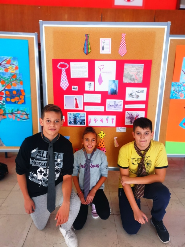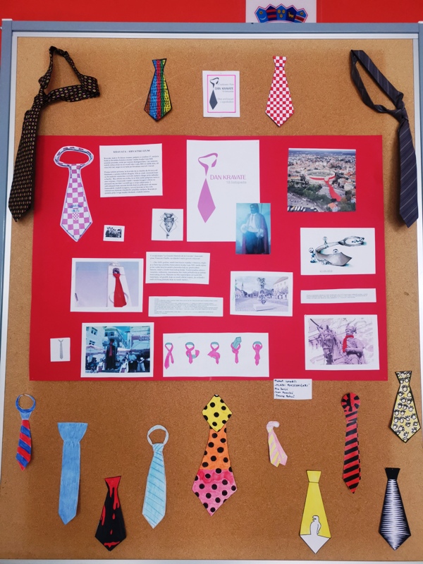 Učenici izvannastavne aktivnosti „Mladi povjesničari“ Mia Šunjić, Frane Rohač i Ivan Vrankić, pod mentorstvom nastavnice povijesti Adriane Kostanić Burić, obilježili su Dan kravate. Prigodno su ukrasili središnji pano u holu škole i na taj način čestitali svima Dan kravate, autohtonog hrvatskog proizvoda.