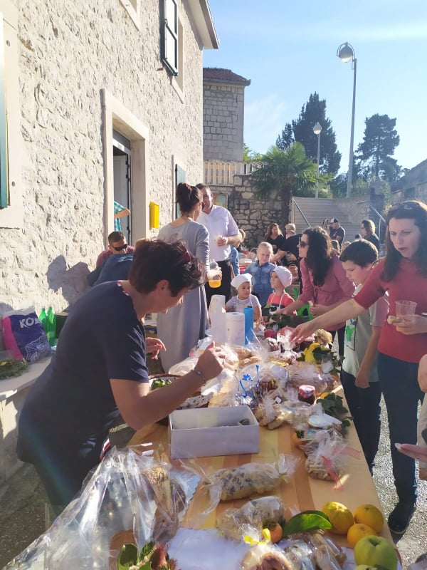 Nakon blagoslova uslijedilo je ugodno seosko druženje uz slasna peciva, kavicu i sokove, te prodaju raznovrsnih proizvoda koje su pripremili svi sudionici ove svečanosti.