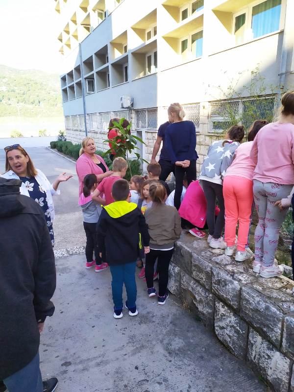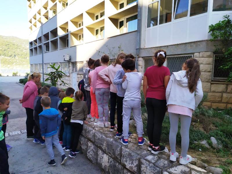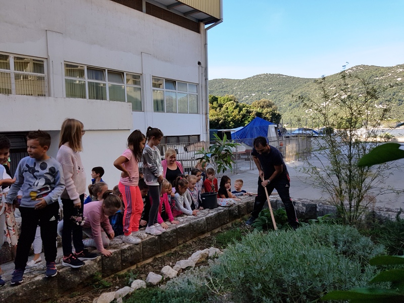Prije početka sadnice nespole, u školskom vrtu učenici su se susreli s djelatnicima Javne ustanove Nacionalni park Mljet. Pridružili su im se i v.d. ravnateljica Tihana Pažin i učiteljica geografije Monika Bušurelo. Učenicima su djelatnici Javne ustanove Nacionalni park Mljet održali kratko, ali vrlo zanimljivo predavanje o samom otoku Mljetu te važnim mediteranskim biljkama i stablima, a sve u svrhu razvijanja svijesti o očuvanju naše primorske vegetacije.