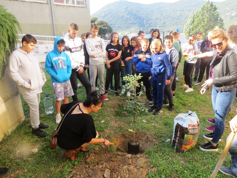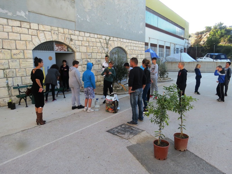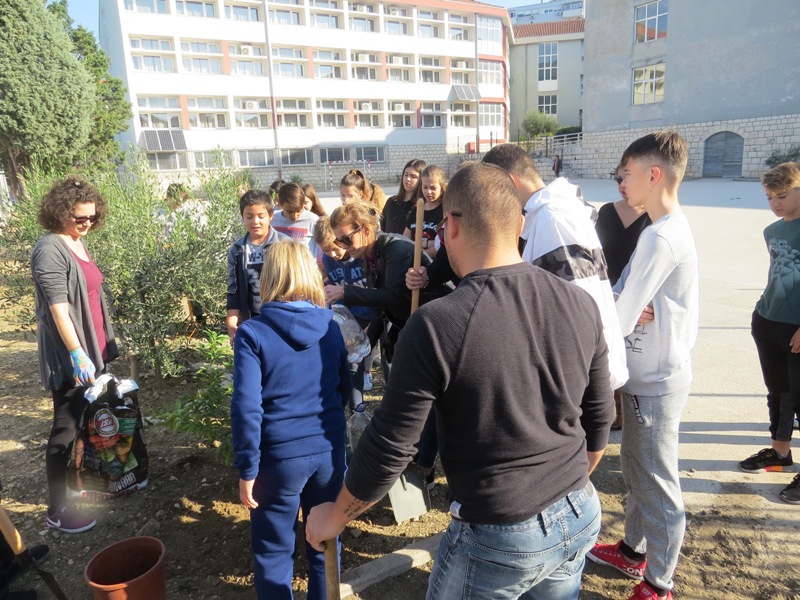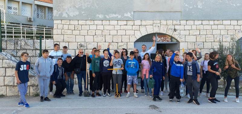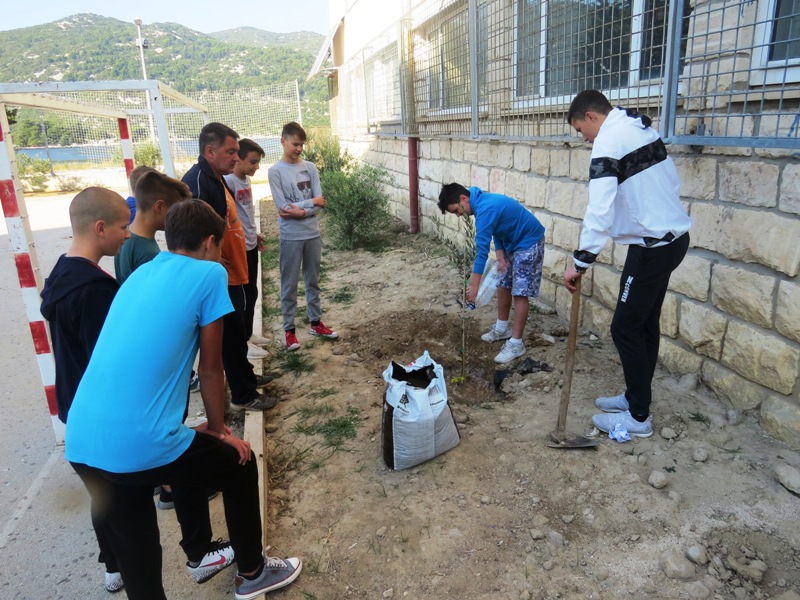 U sklopu građanske inicijative Dani kolektivne sadnje drveća, u subotu oko 10 sati, učenici od petog do osmog razreda naše škole posadili su u školskom vrtu te igralištu oko škole četiri sadnice masline, sadnicu rogača i dvije sadnice kumkvata.