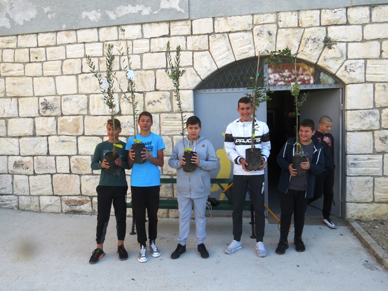 Sadnice masline i rogača našoj je školi, za ovu prigodu, donirala Javna ustanova „Nacionalni park Mljet“. Udruženje obrtnika grada Ploča doniralo je sadnice kumkvata.