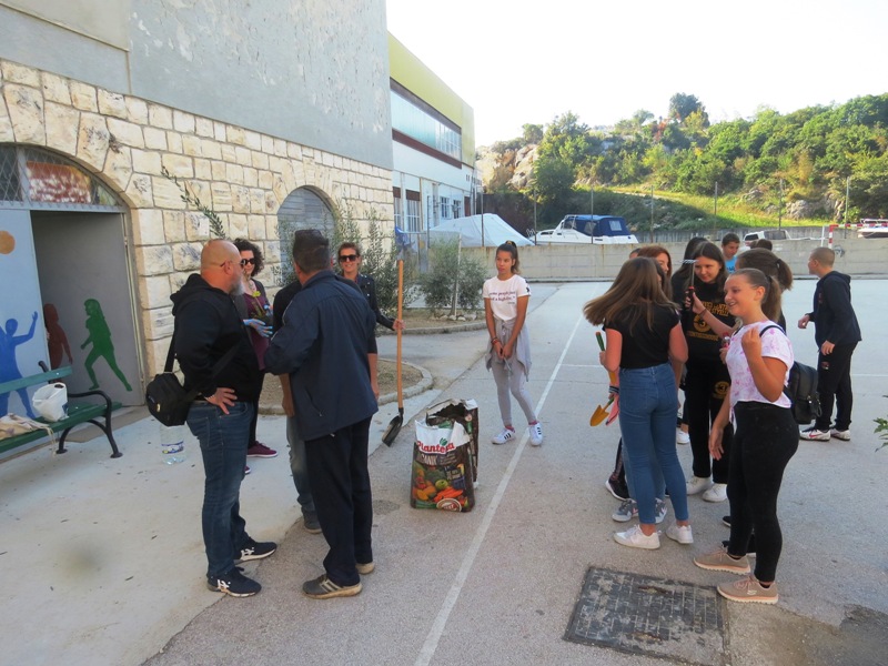 Učenicima su se pridružile Monika Bušurelo, učiteljica geografije i Dona Prović, učiteljica informatike te školski knjižničar Mario Bebek. Školski domar Jurica Franić pripremio je teren na kojem su sadnice učenicima pomogli posaditi članovi Udruženja obrtnika grada Ploča.