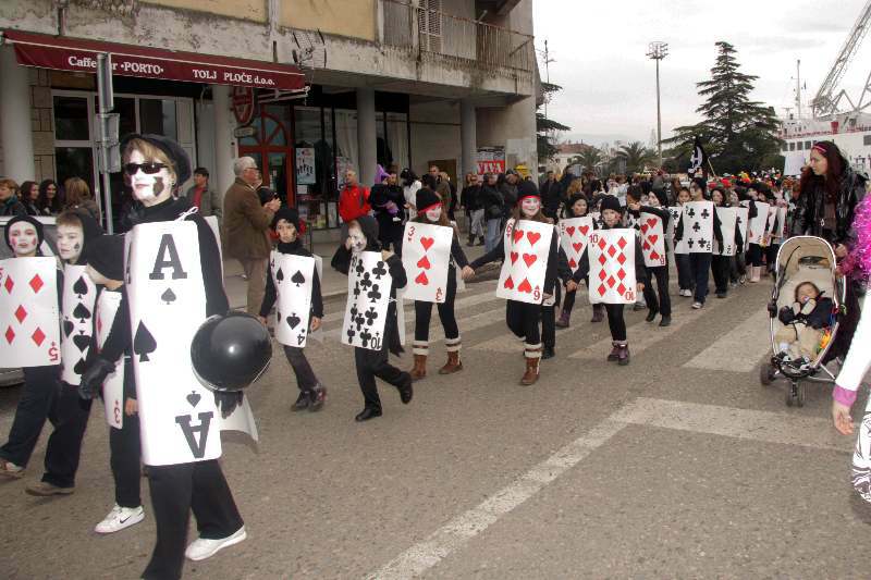Roditelji i učitelji su na školskim radionicama osmislili i izradili grupne kostime za dječju povorku. Maškarane grupe su bile maštovite i vesele. Pločanske ulice su odisale veseljem, smijehom, pjesmom, plesom…