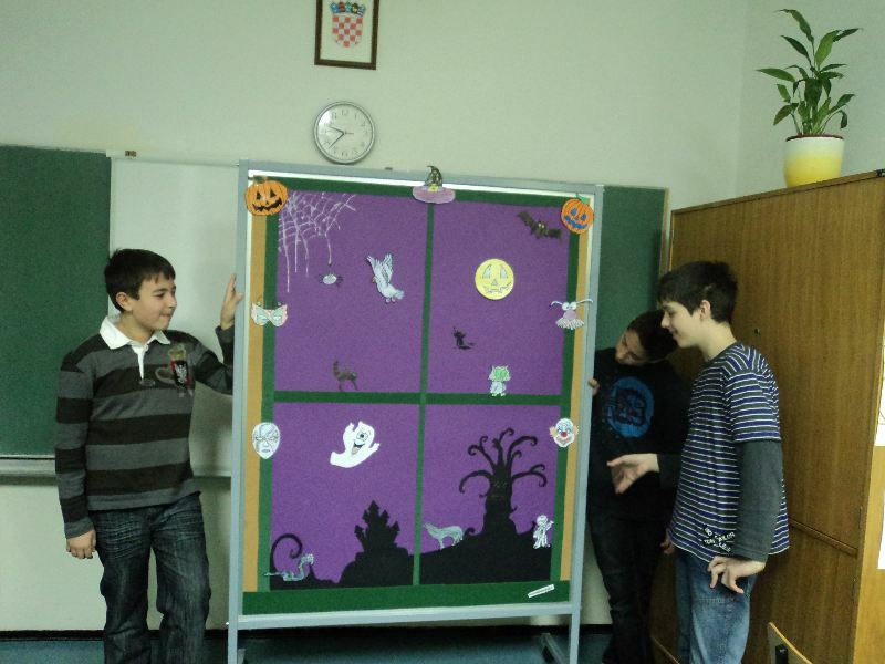 I školske prostore ukrasile su maske koje su izradili učenici na satu likovne kulture, usmjereni njihovim učiteljicama, a i multimedijalna grupa je izradila pano u američkom stilu.
