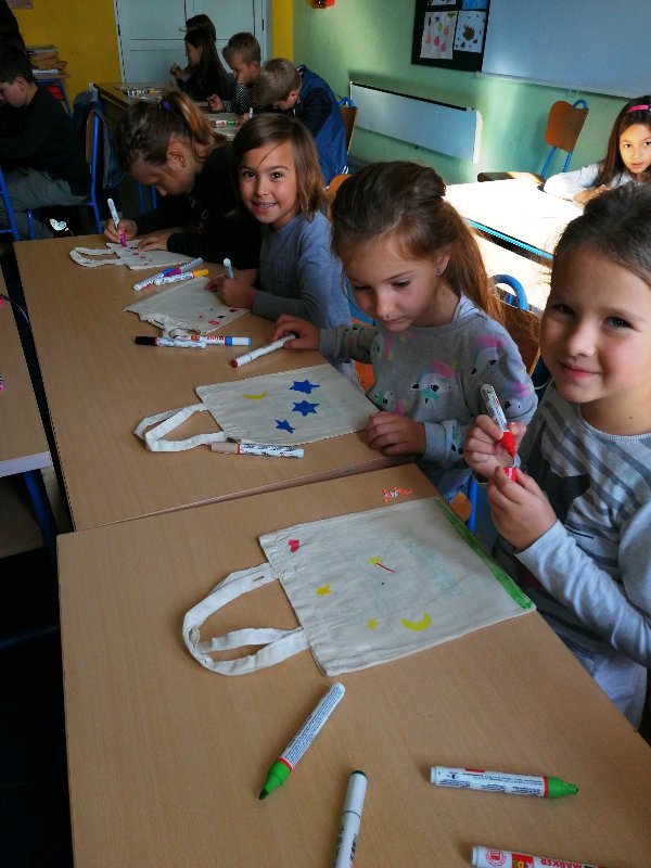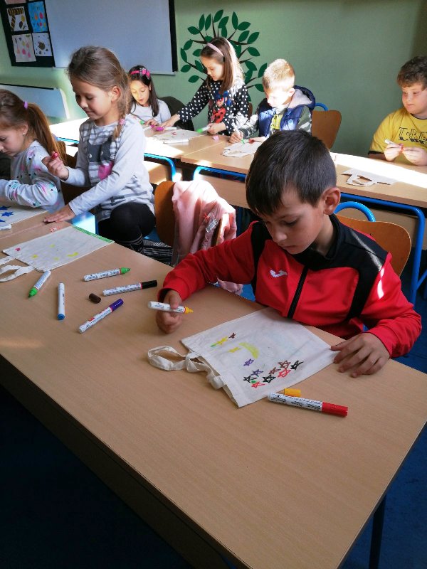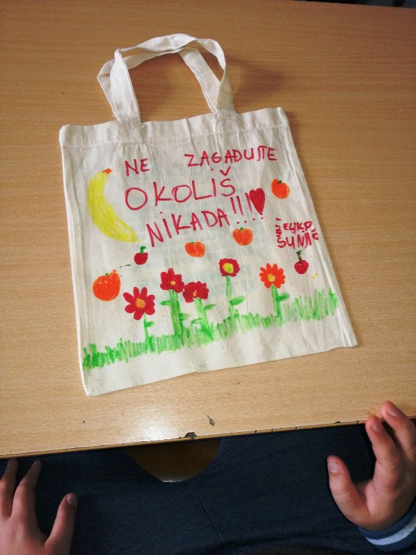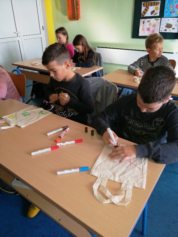 Nakon poučne prezentacije učenici su izrazili svoju kreativnost ukrašavajući platnene eko-vrećice koje su dobili na poklon. Učenici su iskazali veliko zanimanje i izvrsnu suradnju tijekom radionice.