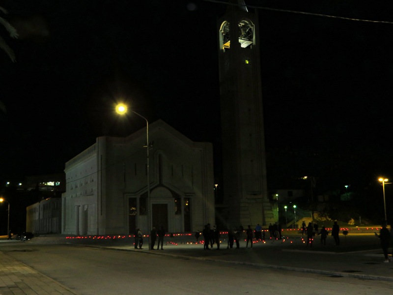 Paljenje svijeća ispred Crkve Kraljice Neba i Zemlje
