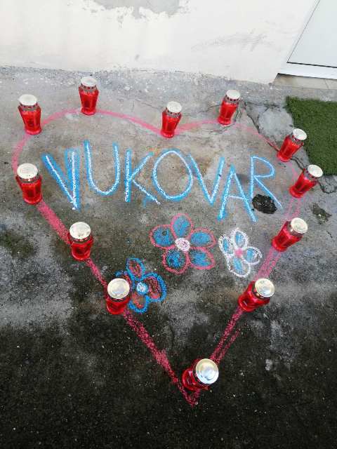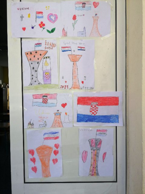 Nakon prikazivanja prigodne prezentacije, učenici su likovnim radovima na dječji način izrazili dojmove i poslali poruke u čast Vukovaru. Nakon toga su u školskom dvorištu zapalili svijeće u spomen na sve stradalnike Grada Heroja! ![]()