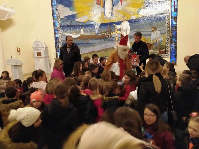Druženje sa sv. Nikolom se nastavilo u Crkvi Kraljice Neba i Zemlje u poslijepodnevnim satima, gdje je Udruženje obrtnika grada Ploča podijelilo još poklona našim malim školarcima.