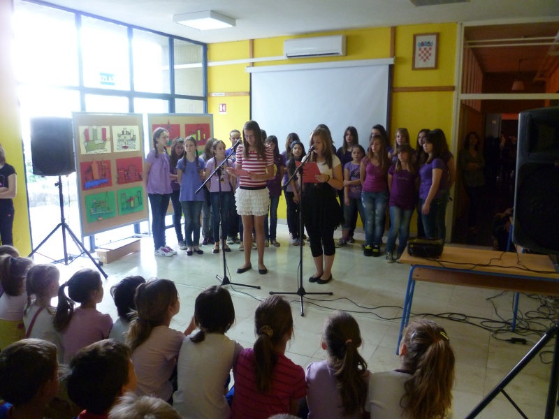 Pjesmu „Non possiamo chiudere gli occhi“ otpjevale su učenice izborne nastave talijanskog jezika. Potom je folklorna skupina II. razreda otplesala plesove „Lipa Mare“ i „Mlade Kaštelanke“, a ritmičku točku „Waka, waka“ izvele su učenice V. c razreda.