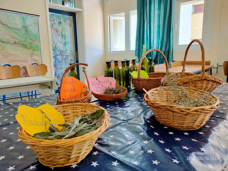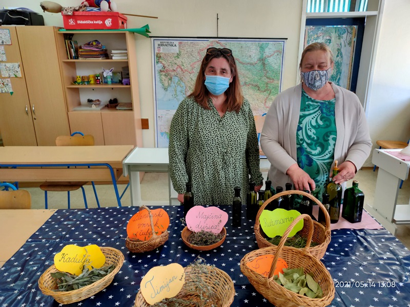 Učiteljice mentorice razredne nastave Dušanka Ivičević i Gordana Vuletić održale su zanimljivu radionicu na temu "Aromatizirano maslinovo ulje". Nakon uvodnog predavanja sudionici su imali priliku sami zamješati svoje aromatizirano ulje koristeći ljekovite sastojke iz školskog vrta. Ovo je bilo jedno poučno druženje u kojem je naglasak stavljen na proizvode iz školskog vrta u službi finalnog proizvoda za konzumaciju.