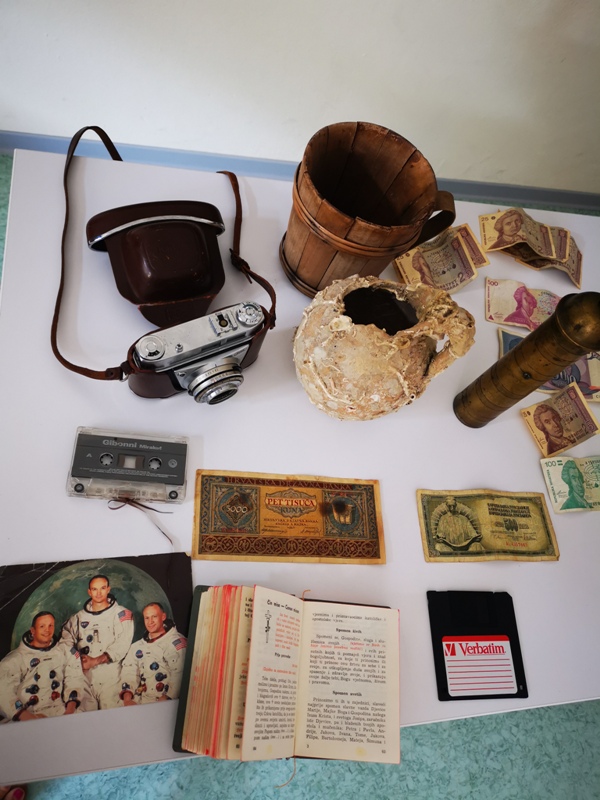 Tako su pronašli, prikazali, istražili i opisali svih 5 vrsta povijesnih izvora: materijalne, pisane, slikovne, zvučne i usmene. U našem razrednom muzeju tako se, između ostalog, moglo naći: stare novčanice i kovanice, mlinove za kavu, ključeve, satove, knjige, slikovnice, VHS kasete, kazete za kazetofon i crno-bijele fotografije.
