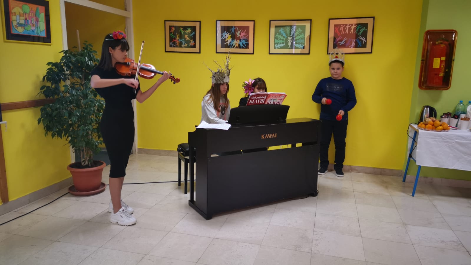 U prvom školskom posjetu gosti su kušali školski čaj Prirodnjačke grupe Arancini, raznježili se slušajući instrumentalnu izvedbu Kvarteta Cantabile, predstavili svoje timove i škole. Bilo je ugodno i izazovno.