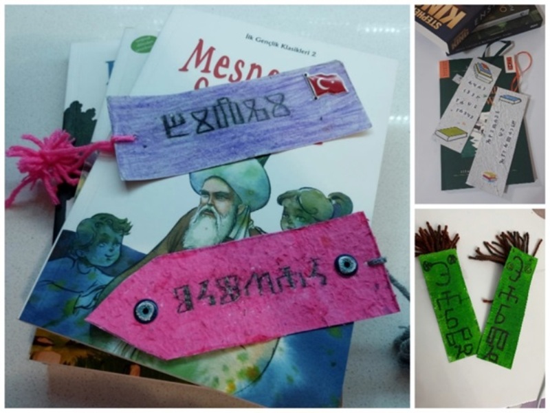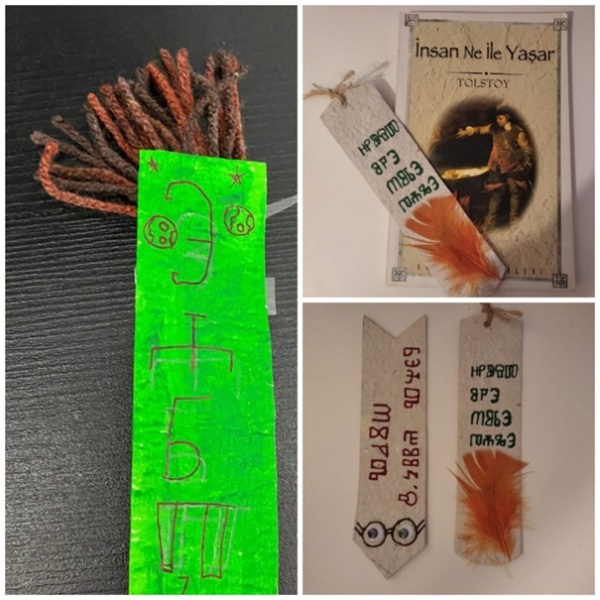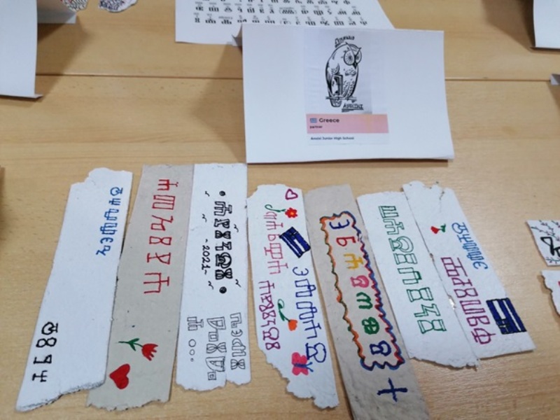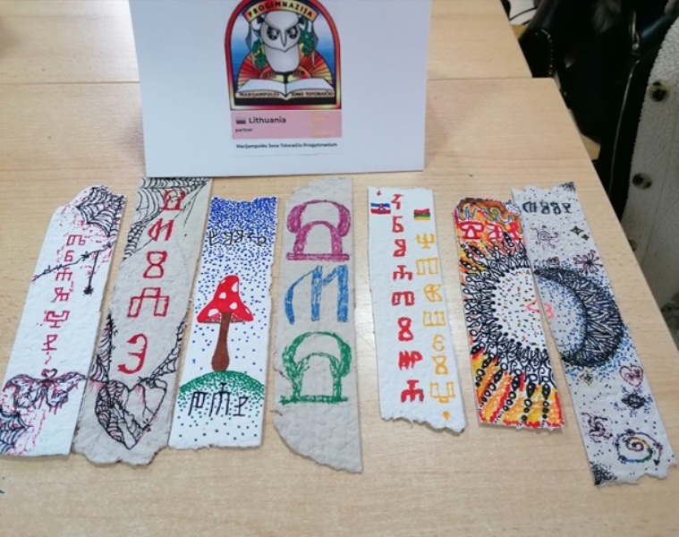 Stare partnere upoznali smo s našim tradicijskim pismom glagoljicom. Koristili smo ga kao ukras na straničnicima izrađenima od recikliranog papira. Još jednom glagoljica potvrđuje svoju estetsku snagu, a ispisane poruke promiču ideje projekta. Bravo za sve!