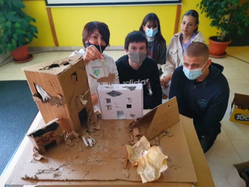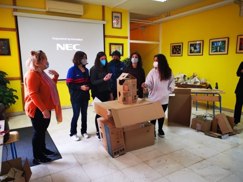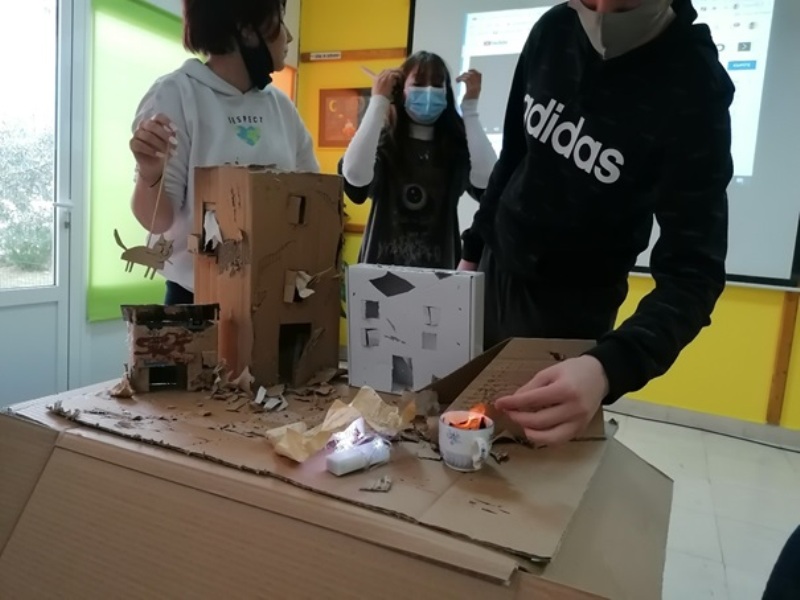 Izrađivali smo scenografiju i lutke od kartonskih kutija, smišljali scenarije, odabrali glazbu i rasvjetu i izveli 6 kratkih predstava o svemu što smo naučili u pet dana naših projektnih aktivnosti.