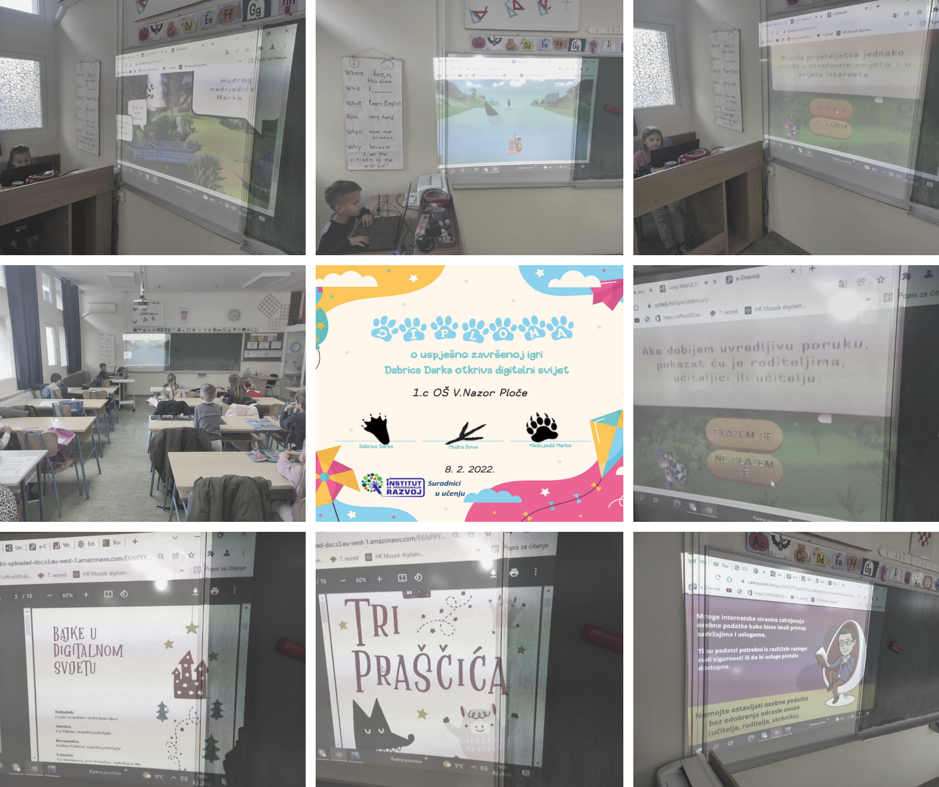 Učenici su odigrali igru Dabrica Darka otkriva digitalni svijet i zaradili razrednu diplomu. Nakon toga su poslušali predavanje učiteljice Perice o važnosti pristojnog ponašanja i sigurnosti na internetu, te na kraju poslušali zanimljivu verziju bajke u digitalnom svijetu – Tri praščića, u neobičnoj, modernoj verziji. Projektne aktivnosti se nastavljaju na satovima Informatike s učiteljicom Anamarijom.
