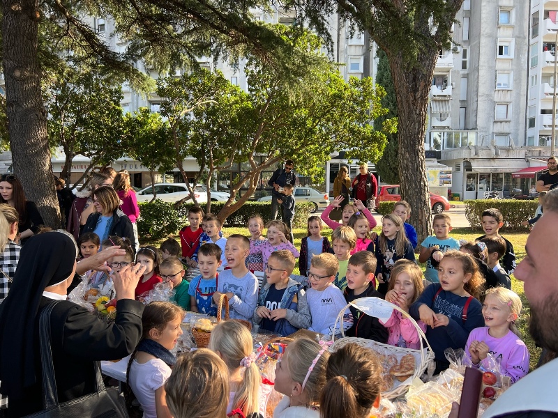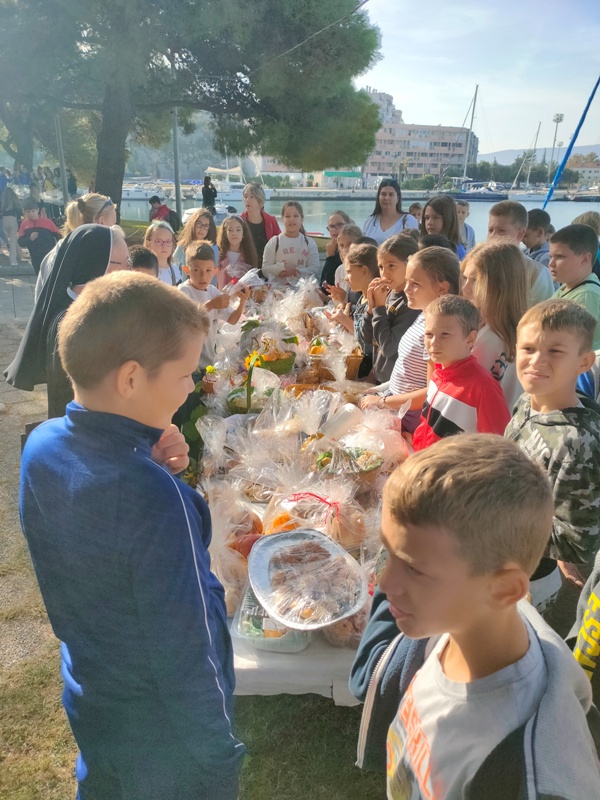 Danas smo obilježili Dan kruha. Svečanost zahvale za plodove zemlje održana je u parku na našoj rivi. Nakon blagoslova don Ante Bitunjca započela je prodaja peciva, slastica, kolača, voća, domaćih proizvoda (meda, suhih smokava, začinskog bilja, marmelada, maslinova ulja, arancina...) i svih onih raskošnih proizvoda koje su vrijedne ruke naših majki, baka i dječice pripremile za okupljene. U zraku se osjetio miris ukusnih peciva, a boje stolova krasilo je šarenilo jeseni. U jednom trenutku su nam se pridružili i najmlađi, naši vrtićani koji su izveli svoj ples. Ono što se nije prodalo donirano je Crvenom križu Ploče jer naša su djeca svjesna da postoje potrebiti i da oni trebaju osjetiti okus zahvale i slavlja za ono što nam priroda daje!