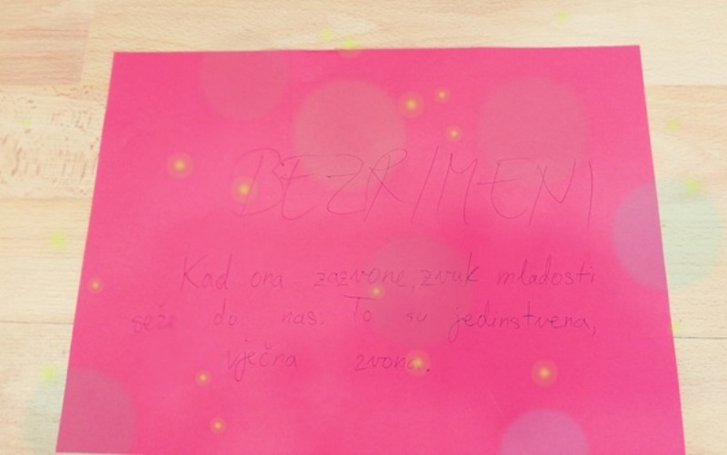 Pažljivim potezima na oblikovana zvona urezivali su stihove hrvatskih pjesnika i pjesnikinja koje im je ponudila učiteljica Marina. U stihovima su učenici prepoznavali misli, želje, strepnje… univerzalne poruke o mladosti. Dok su ruke urezivale stihove, razmjenjivale su se doživljaji te prepoznavala vlastita iskustva u pjesničkom izričaju.