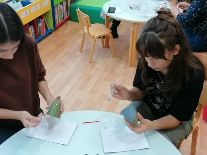 Učenici 8.c razreda sa svojom su predmetnom učiteljicom Marinom Burđelez otvorili Mjesec hrvatske knjige izložbom radova nastalih na radionici modeliranja gline i izradi keramičkih zvona „Ove ruke mogu sve“. Voditeljica Anamarija Bezak naučila nas je štošta o glini i dugotrajnom procesu izrade predmeta od keramike.