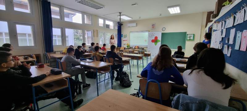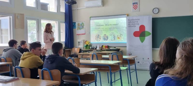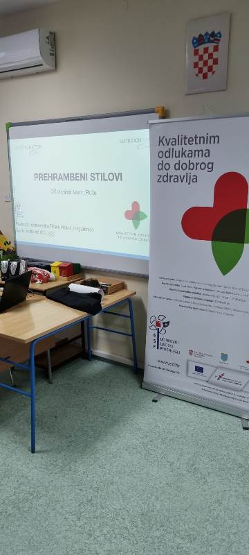 U našoj školi smo u sklopu projekta Grada Ploča u partnerstvu sa Udrugom dijabetičara „Slatki“ Ploče „Kvalitetnim odlukama do dobrog zdravlja“ imali predavanje nutricionistkinje Tihane Pašalić, mag. ing. biotech., koja je našim osmašima približila pojmove zdrave prehrane, zašto je to bitno i kako zdrava prehrana utječe na naš život.