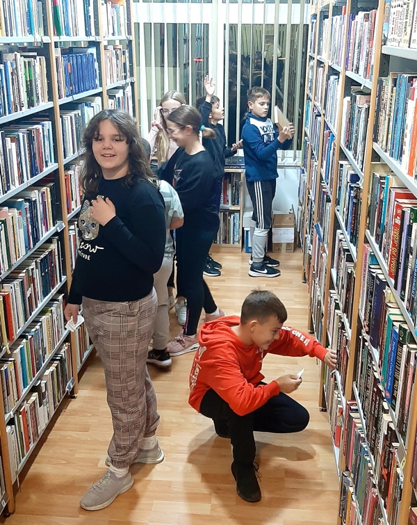 Potraga je bila neizvjesna do kraja, učenici su se ispreplitali među knjigama i policama, pažljivo čitali oznake, komentirali, zaključivali i slagali riječi kako bi otkrili konačnu poruku: "BRINI ZA SEBE, ČITAJ!"