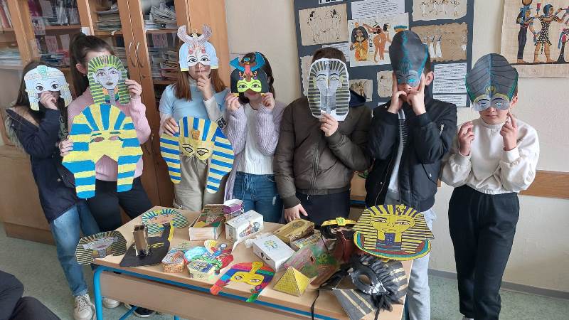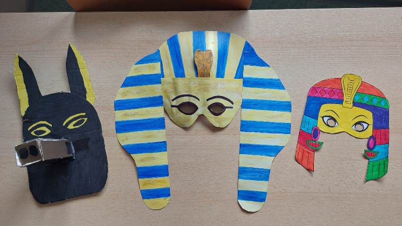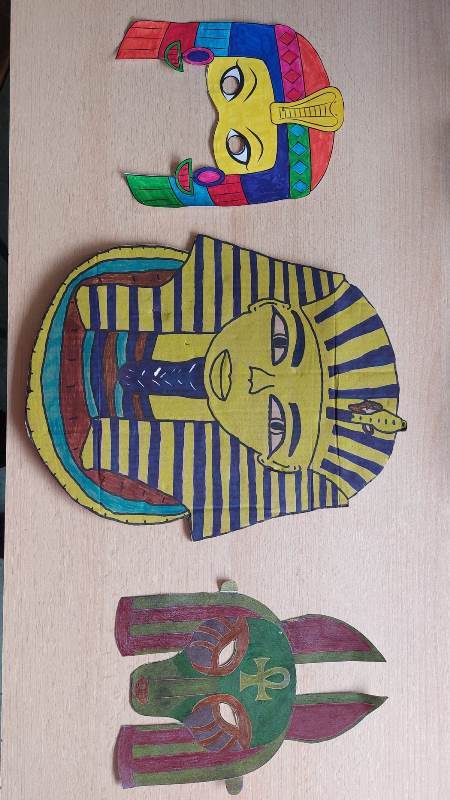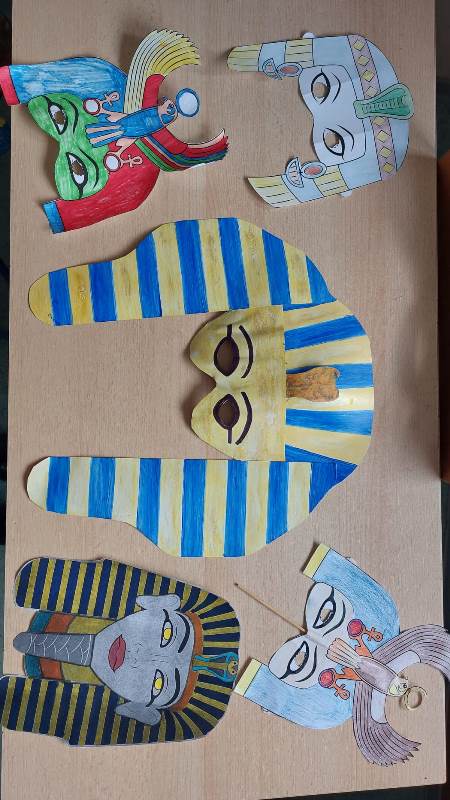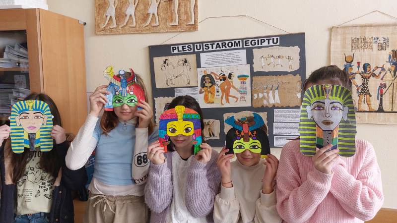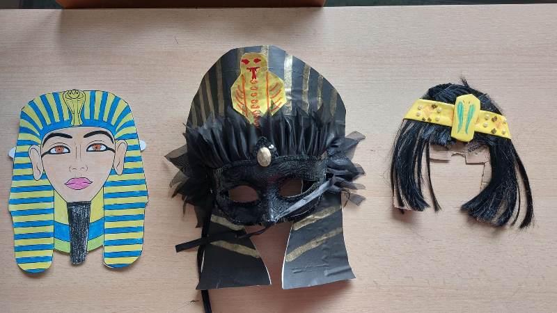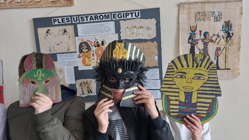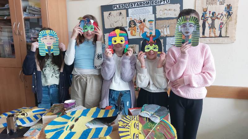Učenici su osmislili egipatske maske za maškare pa nam se kabinet povijesti na kratko pretvorio u maskenbal raznih faraona, poznatih faraonki, egipatskih božanstava i drugih. Učenici su bili veoma maštoviti i kreativni u oživljavanju povijesti pa njihove radove pogledajte u galeriji.