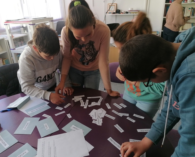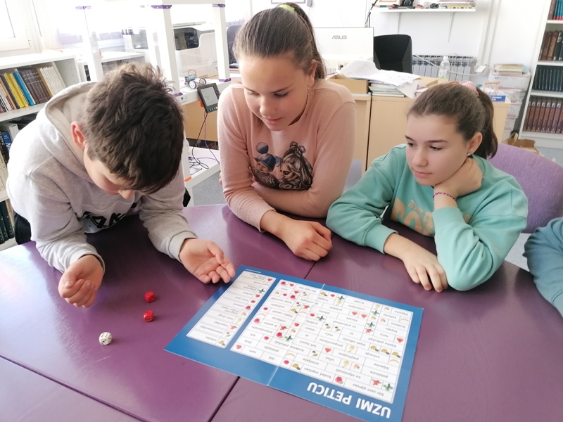 Predstavnici svih razreda predmetne nastave okupili su se u četvrtak u školskoj knjižnici na dvosatu društvenih igara. Tim A Bezimenjaci, tim B Marulićeva dica i tim C Jezikoznalci zaigrali su 6 društvenih igara koje su za njih pripremile nastavnice hrvatskog jezika Marijana Gluščević, Ivana Pudar Pećar i Marina Burđelez.