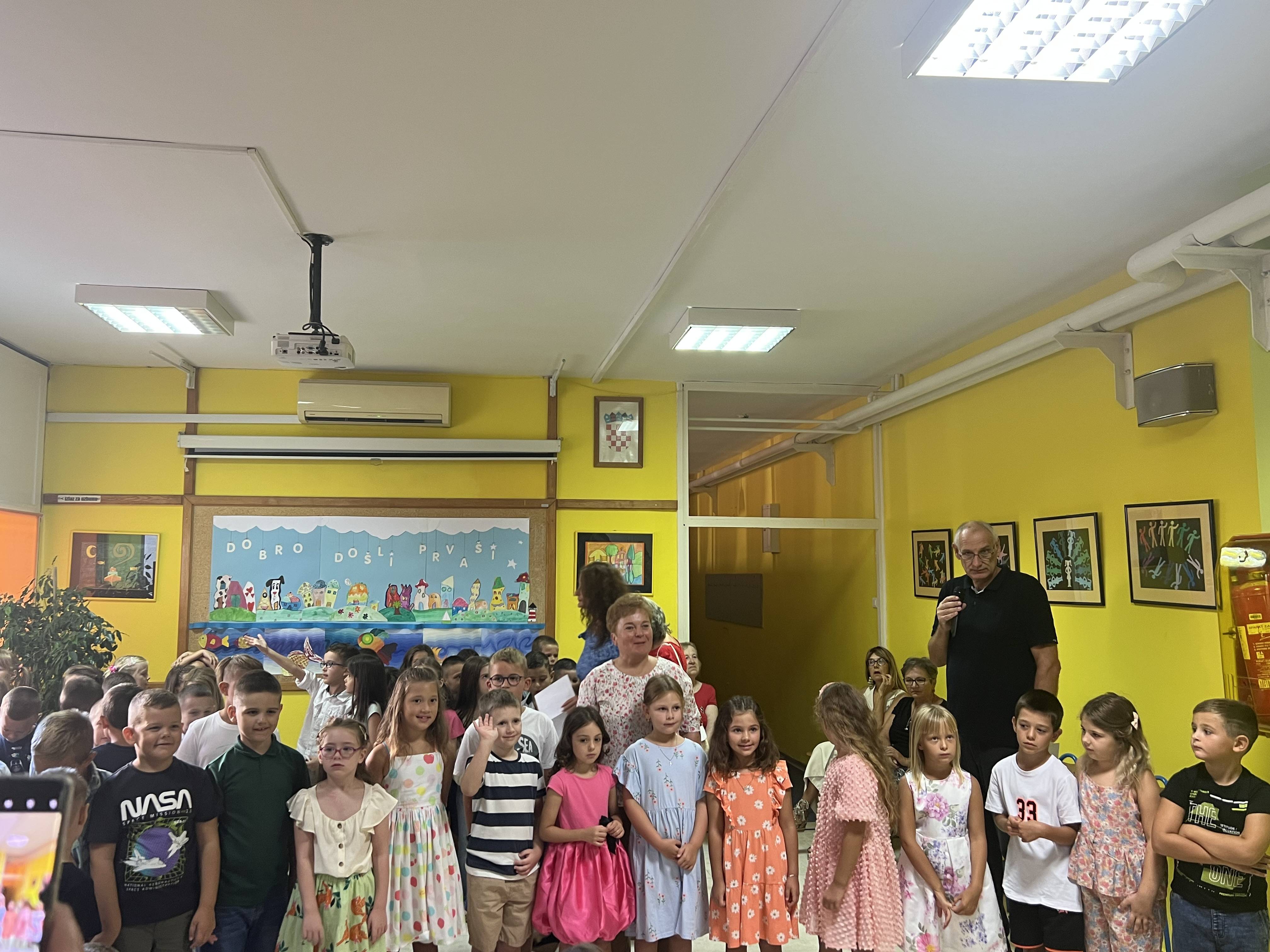 Danas je uzbuđenje i pozitivno ozračje lebdjelo u zraku u našoj školi - održan je prijem prvašića. U školsku godinu 2023./2024. je upisano ukupno 54 prvašića – 49 u matičnoj školi i 5 u PŠ Rogotin. Učenici su raspoređeni u ukupno 4 odjeljenja – 1.r. PŠ Rogotin kod učiteljice Marine Kovačević, a u matičnoj školi u 1.a kod učiteljice Gordane Vuletić, 1.b kod učiteljice Mirjane Barbir i 1.c kod učiteljice Selme Oršulić. Nakon pozdravnog govora ravnateljice Tihane Pažin, slijedila je prozivka učenika koji su sa svojim učiteljicama i roditeljima otišli upoznati svoju učionicu i uzeti svoj komplet knjiga za prvi razred.