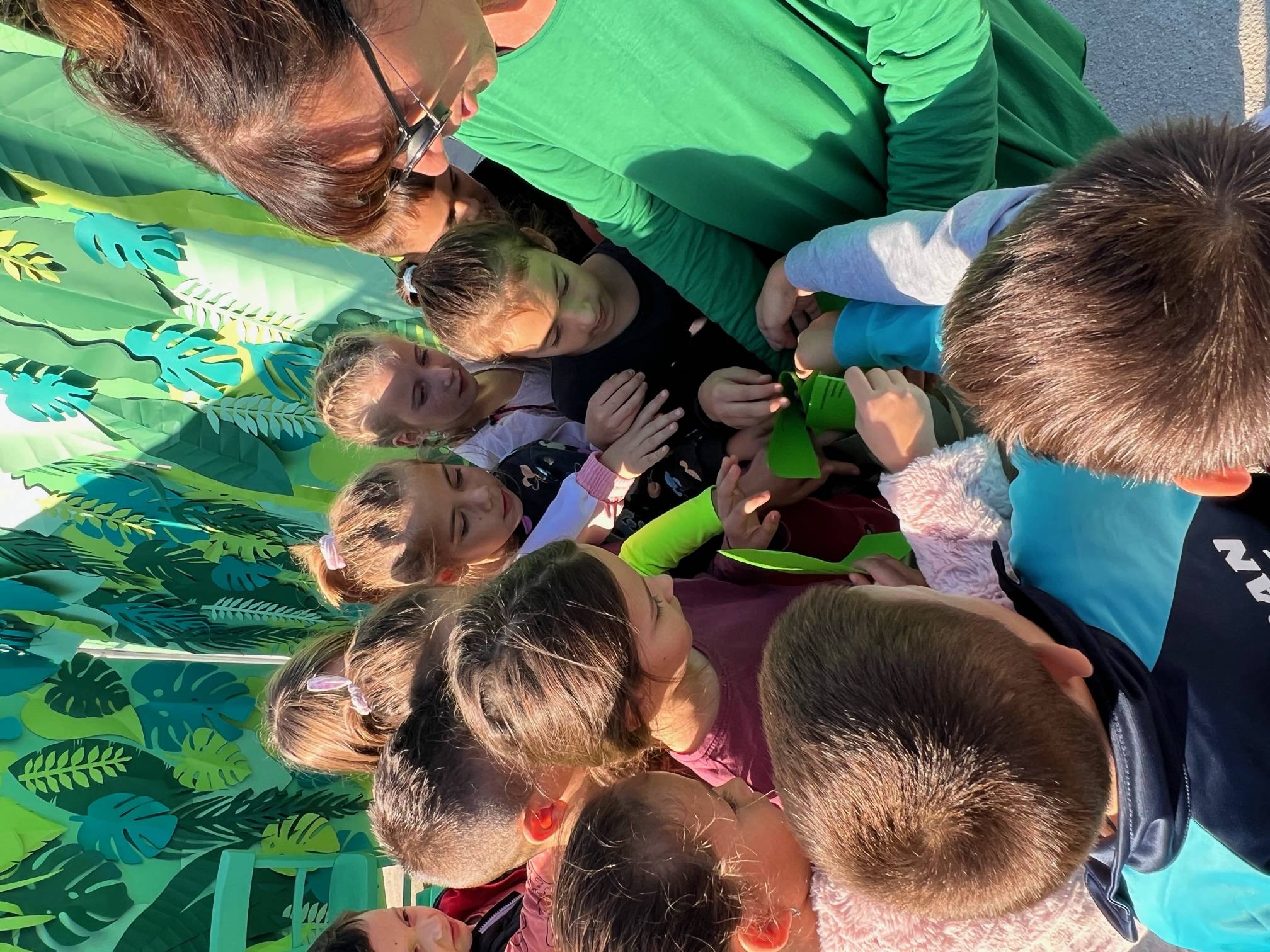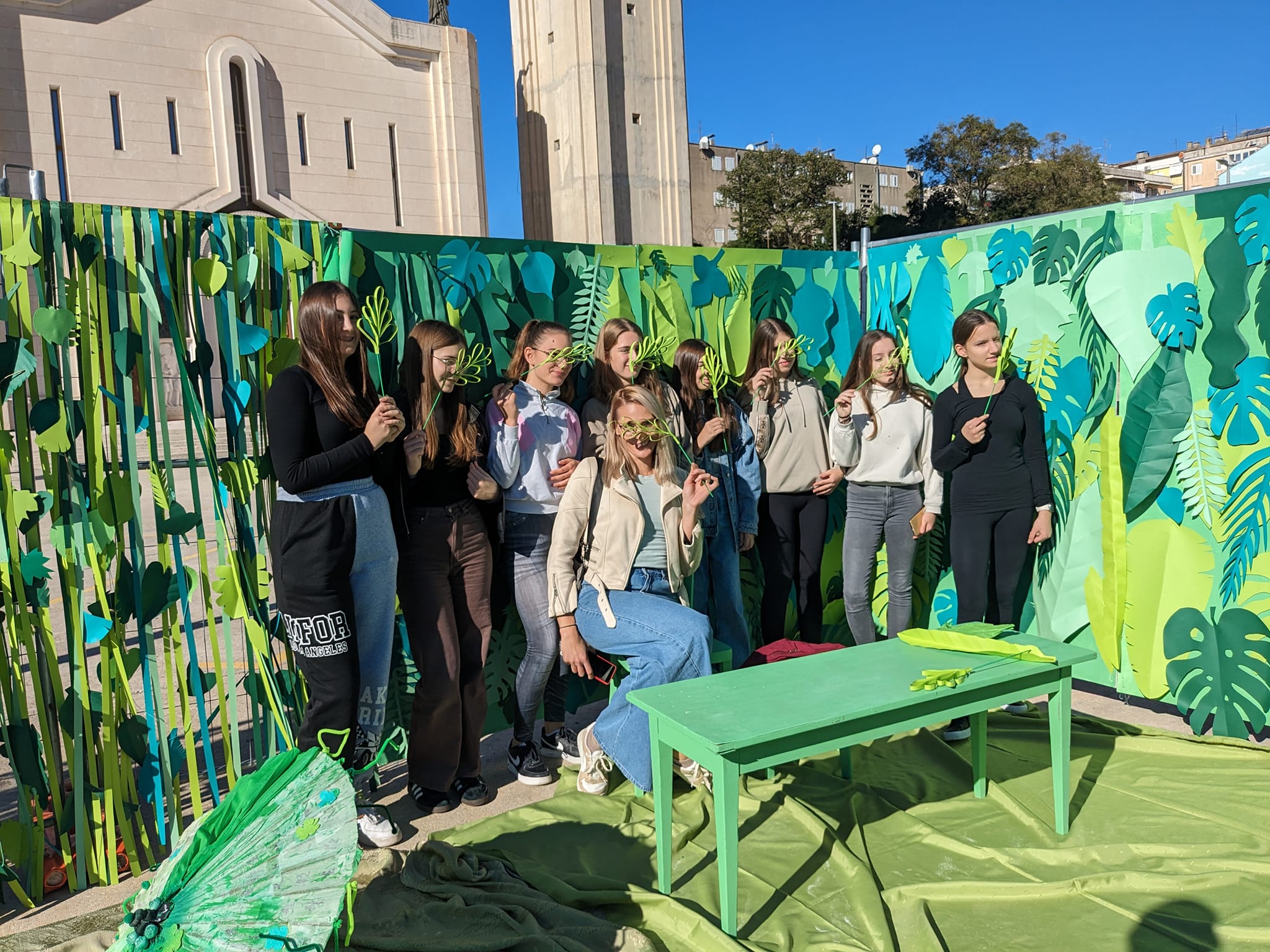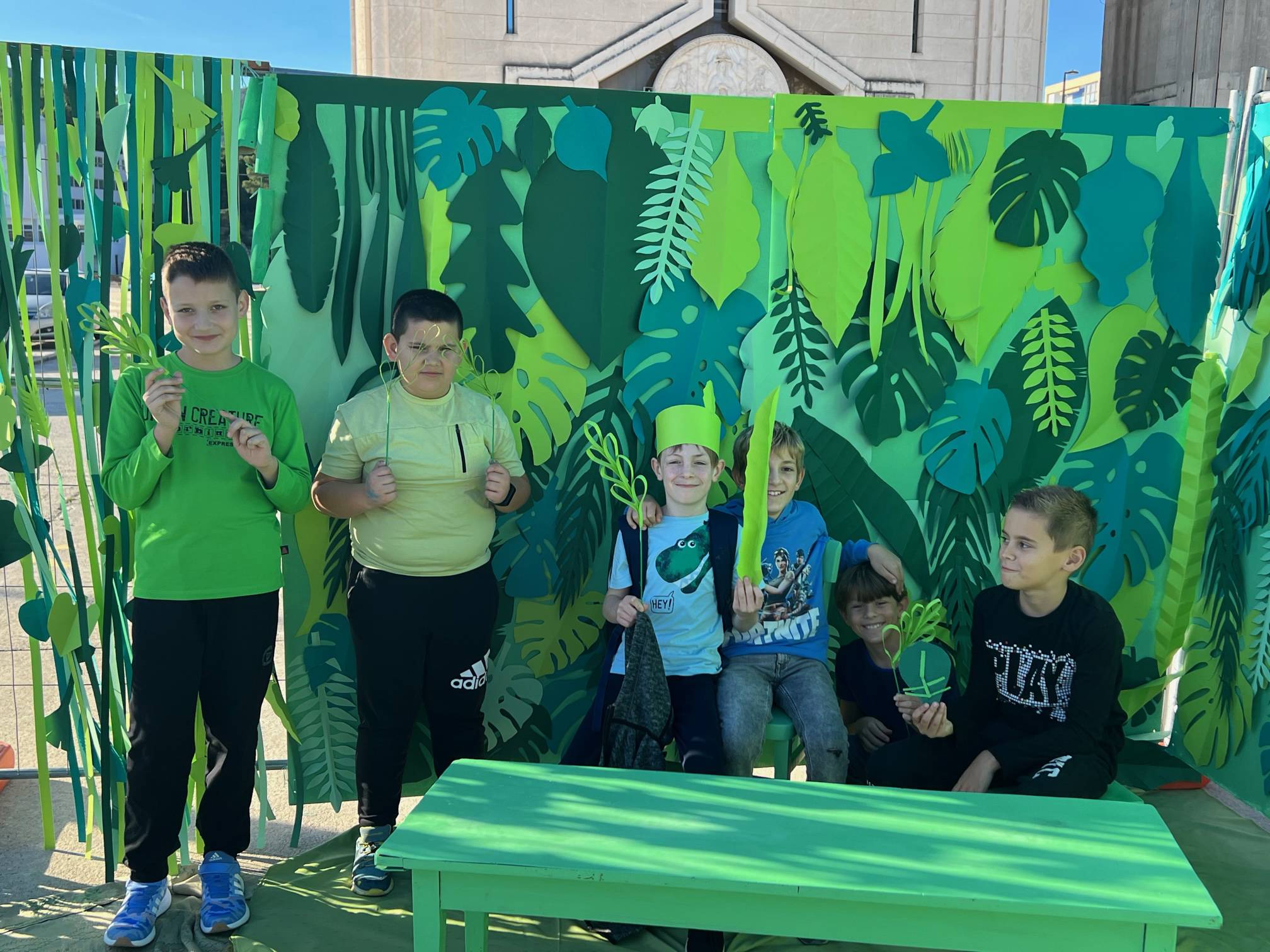 Jedan dio aktivnosti – izrada “photobootha“ od zelenog lišća te izrada „zelenih“ poruka se radio u školi pod vodstvom učiteljica Marije Čupić Sente, Ivane Pudar Pećar i Marine Burđelez, a u suradnji s našom dragom suradnicom Boženom Delaš.
